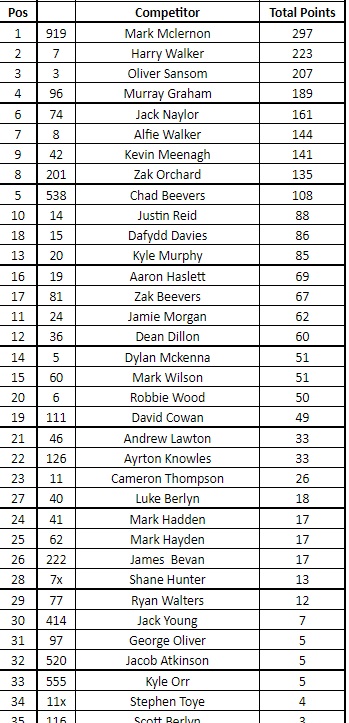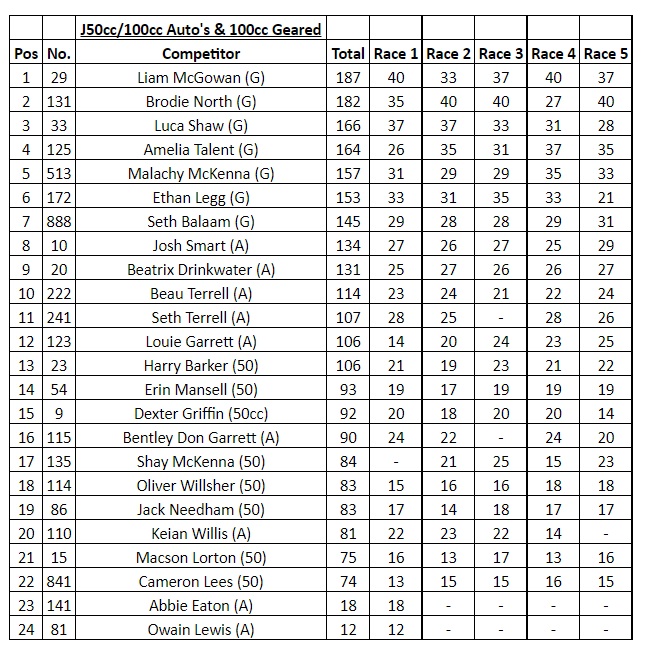 Brodie North took three wins in the 50/100 but it was Liam McGowan who took the overall with five great races. Luca Shaw battled hard to take third overall a few pints ahead of Amelia Talent.