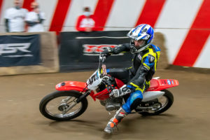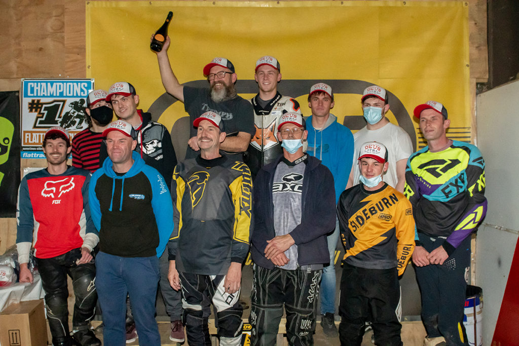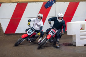 This TT track was on the Champions Flat Track oval but instead of doing a normal oval race Peter Boast, the owner of Champions Flat Track, put some barriers out, so there were two tight left-handers, one big left sweeper and a right turn.