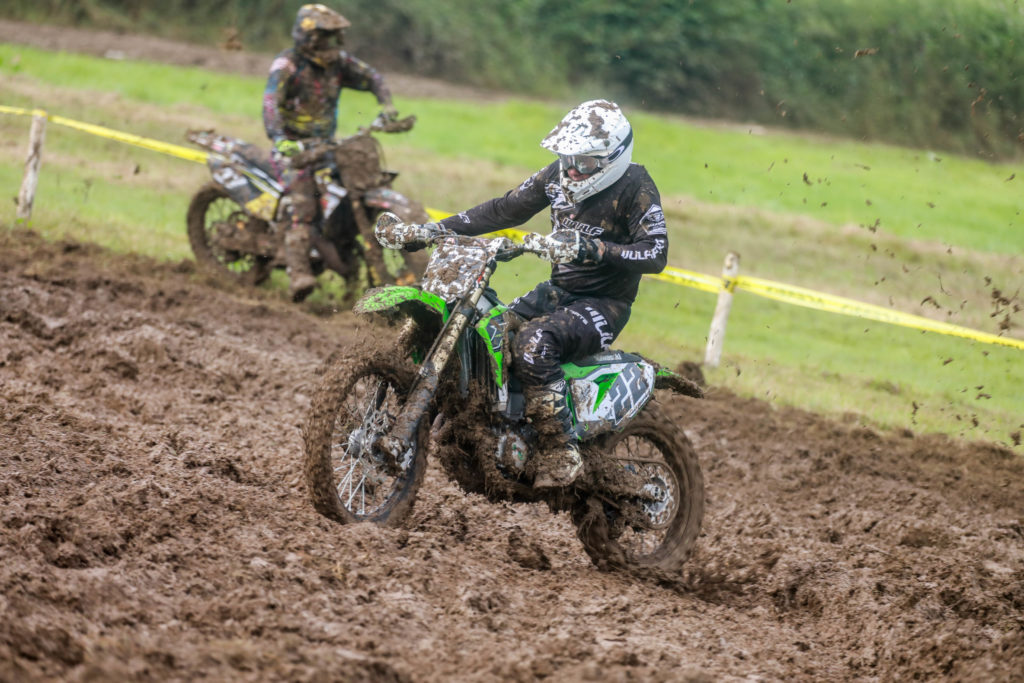 It was the LS2 helmets Vets Over 40 mixed with the Pro Green sponsored Ladies class that were next to sample the North Somerset dirt with Danny Blakeley dominating the weekend with five wins but he didn’t have it all his own way as Barry Gray gave him a run for his money all weekend but had to settle for runner up this time around. Craig Chamberlain was in the mix as well grabbing a second behind Blakeley in moto two keeping him in the hunt until the end eventually finishing third overall.