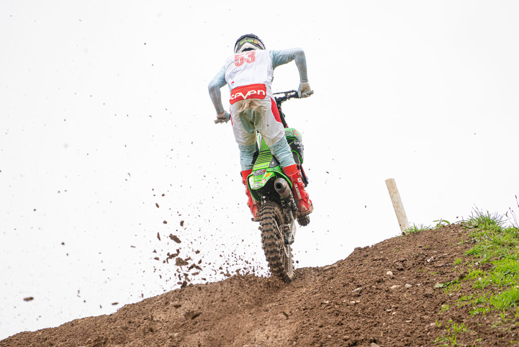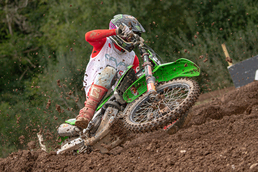Team Revo Seven Kawasaki rider Dylan Walsh showed incredible pace from the start of the day to the finish in a stunning final round of the Revo British Motocross Championship at Landrake.