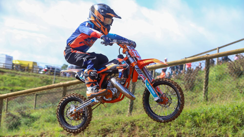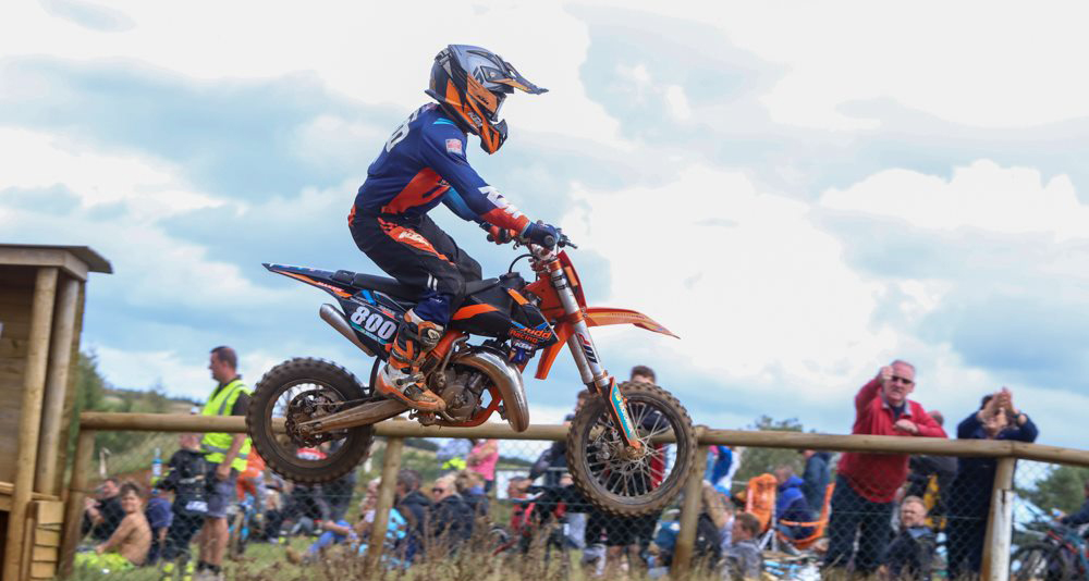 The Big-wheeled 85 class was intense to watch, although on paper it was a big point advantage for the overall winner with 4 out of 5 race wins it was at times the best racing to watch. Jack Peacey took the well deserved overall top step with a fine display of riding, but the points gap was only as big as it was due to Luke Richards and Ben Casey both scoring a 7th place apiece. Peacey was only beaten in the final race in the slippery conditions by Casey who got out front early and put the hammer down never to be caught. Richards followed him home less than 6 seconds down at the flag but Peacey’s safe ride for third over a minute in front of 4th place was more than enough to lay claim to the title. Casey’s last race win was what was needed to secure the second step, 2 points in front of Richards with progressively better results throughout the weekend over Connor Howells, giving him a 3 point advantage over the GasGas mounted (ok it was only graphics) Seth Manners.