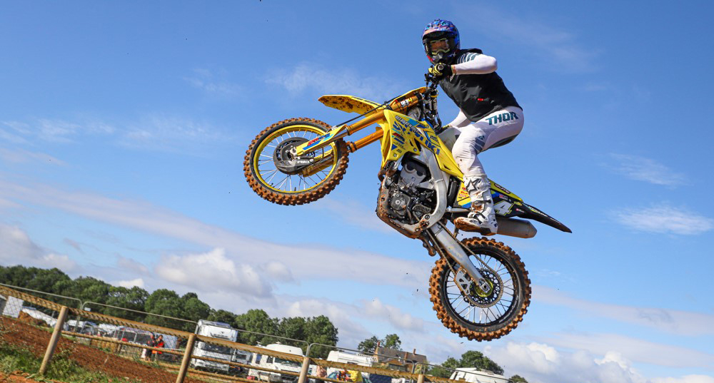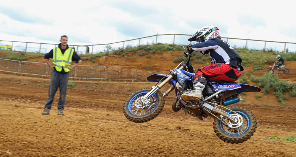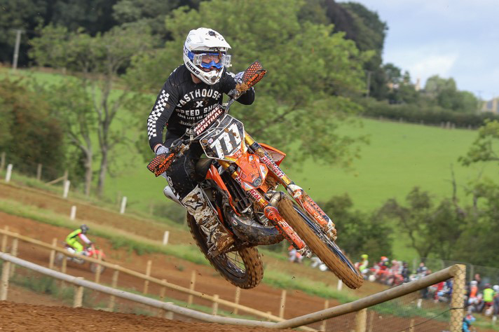 MX2 was again a three-rider breakaway with Adam Harris on the 250 2 stroke pulling the holeshot and pulling away slightly to about a 5-second advantage. By the time Rob Yates had managed to deal with Aiden Williams on the two-stroke, these three had pulled out a huge gap on the rest of the field. Yates set about clawing back the gap on Harris, and within a few laps, his pace had carried him onto the rear wheel. Harris was pushing hard and had to let up somewhat after damaging a radiator on the top of an inside rut letting Yates off the hook and onto a comfortable win.