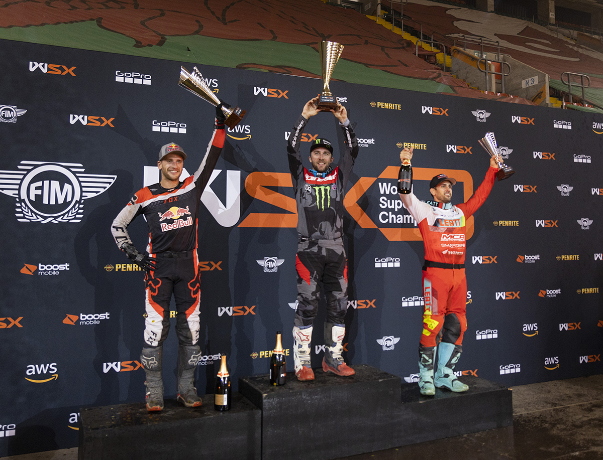 In the SX2 category McElrath, who finished third in his heat race, took the overall victory for Rick Ware Racing and leads the championship standings by a single point after going fourth, third, fifth in the night’s three GP races, highlighting the importance of consistency in the World Supercross Championship’s main event format.