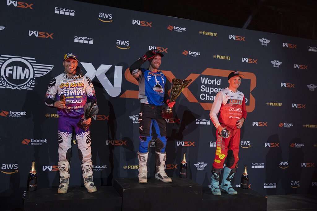 Chris Blose said of the new event structure, “I raced this format in 2019 at the Aus X Open so I was a little familiar with it but it was very similar and very chaotic, and you’ve got to be on it in the main events. I think everyone up here had one bad race and it’s just trying to eliminate those, recover in between the main events. But you know what, being here has been an awesome opportunity and I’m very thankful, and I’m looking forward to the future of the World Supercross Championship, and the many more rounds that are going to come.”