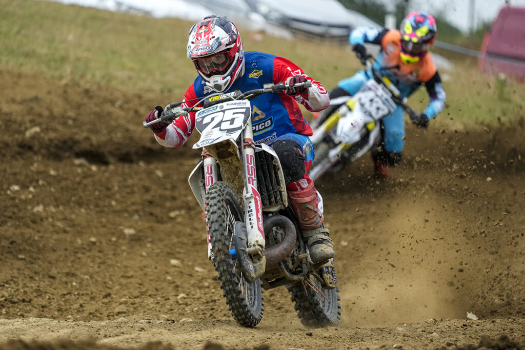 Jamie & Jack went old school for qualifying and picked pegs for their gates on Saturday. In race 1 they both got out of the gate well as expected, after they both passed a rider Jamie was in 2nd place and Jack in 3rd to the flag. Race 2 was more eventful with Jack getting the holeshot, though he was passed by Josh Spinks on the opening lap. He then went on to have a close race with Jamie, which was great to watch. On the penultimate lap, Jamie made the move to pass Jack as they left the top field, Jack slid out and Jamie hit his trailing rear wheel which resulted in Jamie coming off his bike. Luckily, Jamie was able to remount without losing any places and cross the line in 3rd place to Jack’s 2nd. With the riders tying at the end of the first day, it was down to Sunday’s racing to determine which Apico Husqvarna rider would come out on top.