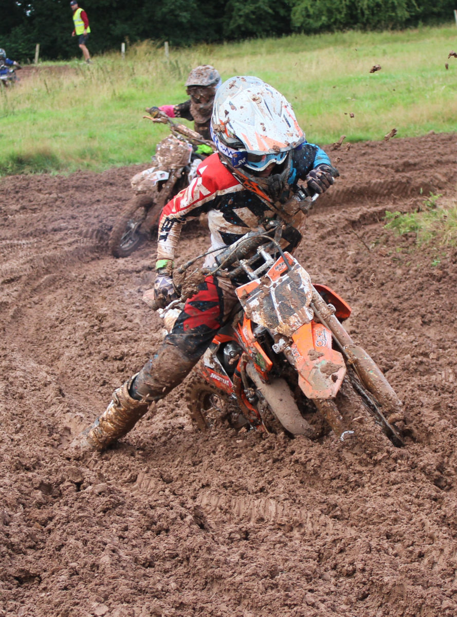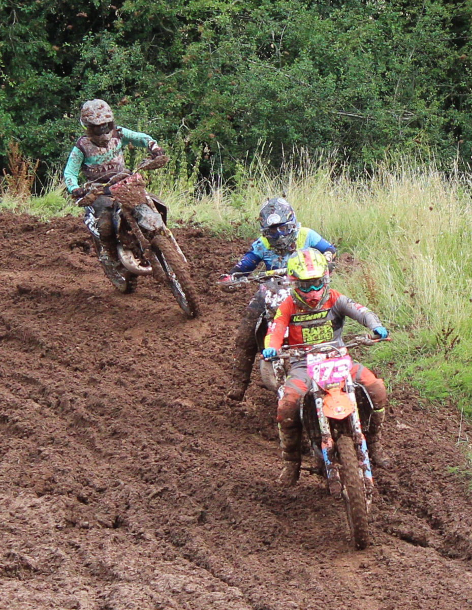 As the girls sat on the line waiting for the start it started raining but this didn’t deter them, blistering out of the gate and it was Amber McGregor taking the Muscle Doctor Holeshot by a tyres width from Reece, with Rainey half a bike length behind, McGregor set a quick pace but Reece, back on form, soon took the lead and rode a steady controlled race, Rees-Evans was riding her heart out as she picked her way through the pack setting fastest time of the race but couldn’t catch Reece, settling for 2nd, Amber McGregor kept Rainey at bay but only half a second separated them at the flag with Millie Sweeney rounding out the top 5.