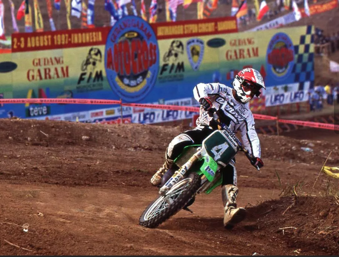 He turned from a title challenger in the 125cc class for Suzuki, where he finished 2nd in 1993 to Pedro Tragter, into a crazily-fast 250cc Pepsi Honda pilot, where he won 6 of the last 8 GPs of 1994 under the tutelage of Roger DeCoster, who briefly switched to the GP series for that season. His first win on the bike was at Foxhill, and with no championship pressure he romped to those wins for 3rd in the series whilst Greg Albertyn & Stefan Everts fought it out for the title.