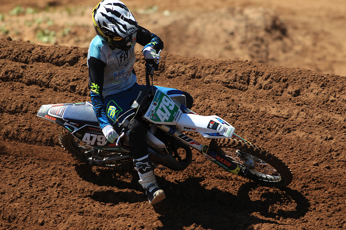 For this weekend, the Youth 125 and Youth 250 classes had been combined and when the gate dropped for the first Moto Charlie quickly got into the lead by the end of the opening lap. Once in the lead, Charlie quickly got into a flow and pulled away at the front and took the win by nearly 20 seconds.
