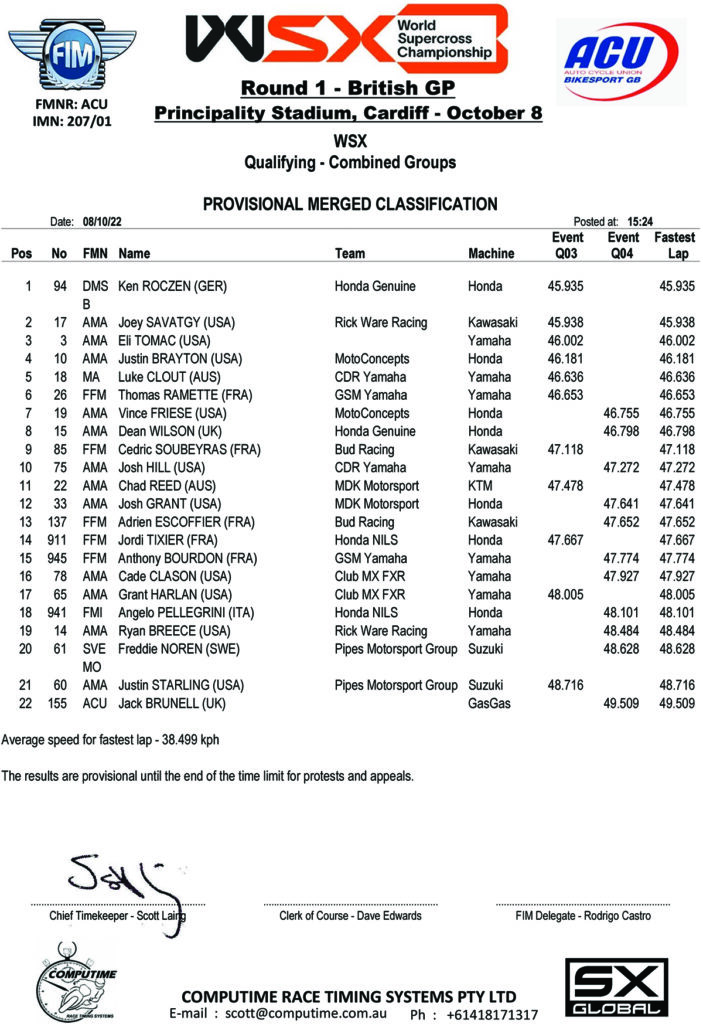 Ken Roczen and Jace Owen topped the qualifying session in Cardiff ahead of this evening’s FIM World Supercross Championship Opening round.
