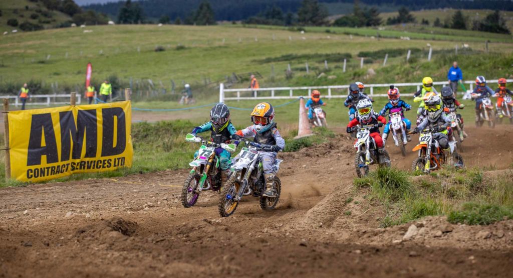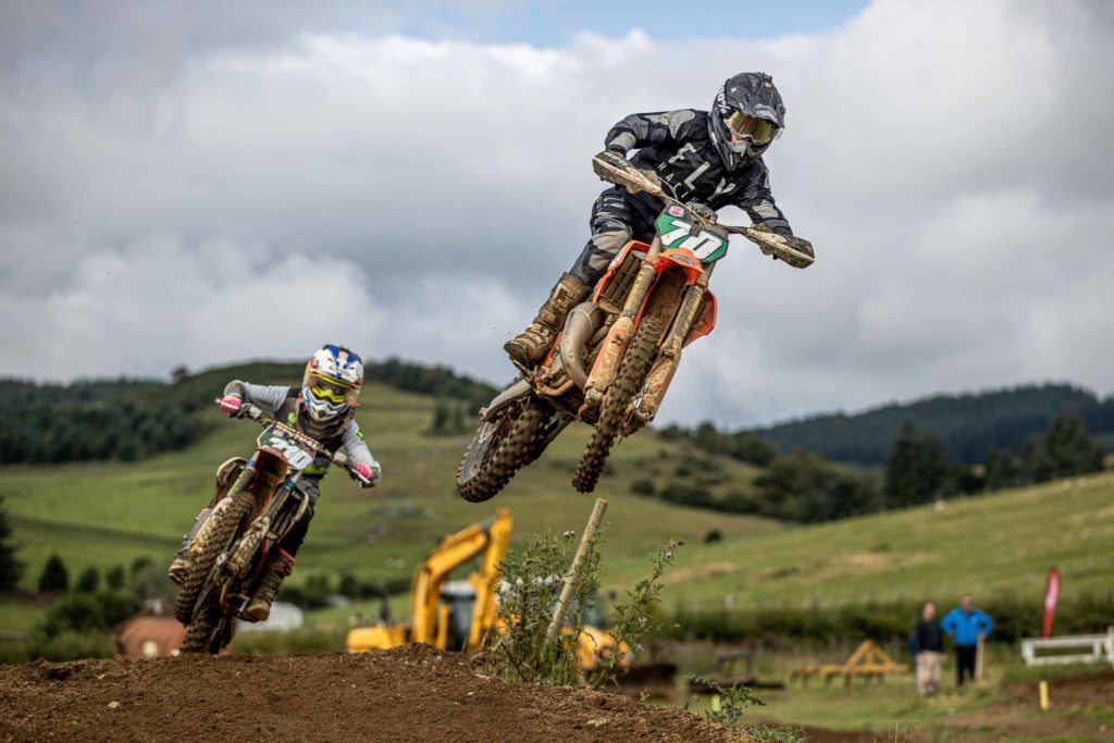 Zak Hendry has had a great season so far and won all previous rounds, but he had his work cut out at his home track as Lyall Rutherford had other ideas. The diminutive rider grabbed the AMD hole shots and rode hard every lap as Zak pushed him all the way and nearly mugged him on the line in the first race as Lyall rolled off the gas before the line. Lyall did manage to gap the field in the subsequent races as he had his best result to date. Tucker Moffat had a solid weekend and managed a second place in the fourth race and got within 4 points of Zak to secure the final podium but Zak’s solid second overall was never in doubt. Caleb Shearer had a mixed weekend but did enough to get a good fourth overall ahead of Cole Macauley whose long trip over from Northern Ireland was worth it as he secured fifth. Harris Curran had a great weekend with three excellent fourth places but the DNF in race three put paid to finishing higher up the places. It was hard to separate Harris and Caleb as they swapped places during races all weekend.