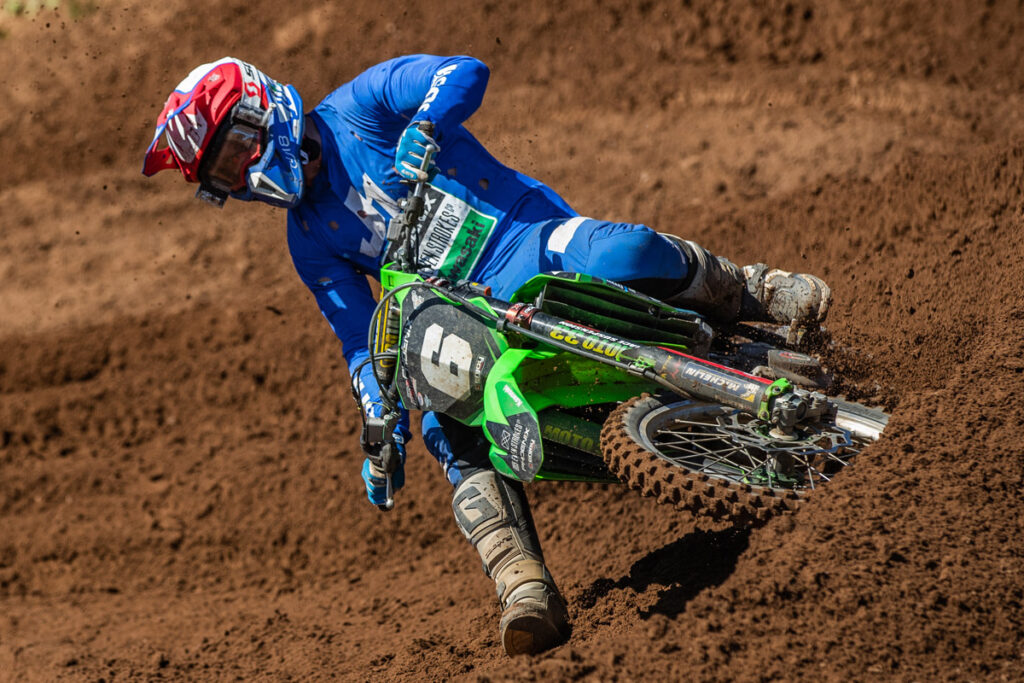 After a quick turnaround from the team’s mechanics to get his bike ready for race two, Petrov would pause for the final gate drop of the day with renewed vigour. A similar start to race one gave ‘152’ a solid platform to build upon as many riders were clearly suffering in the summer heat. He took that opportunity well to battle up into the top 10 shortly before a further bike issue would result in a DNF. A disappointing end to the day for Petrov, especially after the speed shown in the morning sessions.