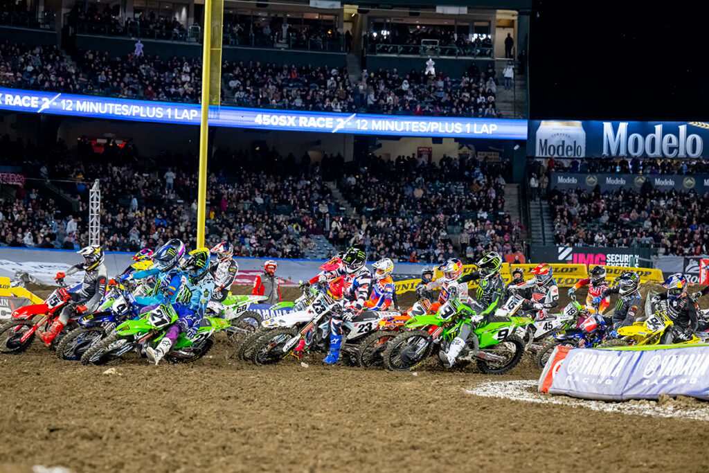 Monster Energy Kawasaki’s Jason Anderson, the 2018 Supercross Champion, earned the runner-up spot at the second race held at the Anaheim venue this year. Progressive Insurance ECSTAR Suzuki’s Ken Roczen nabbed the final spot on the podium and was the most consistent of the top racers.
