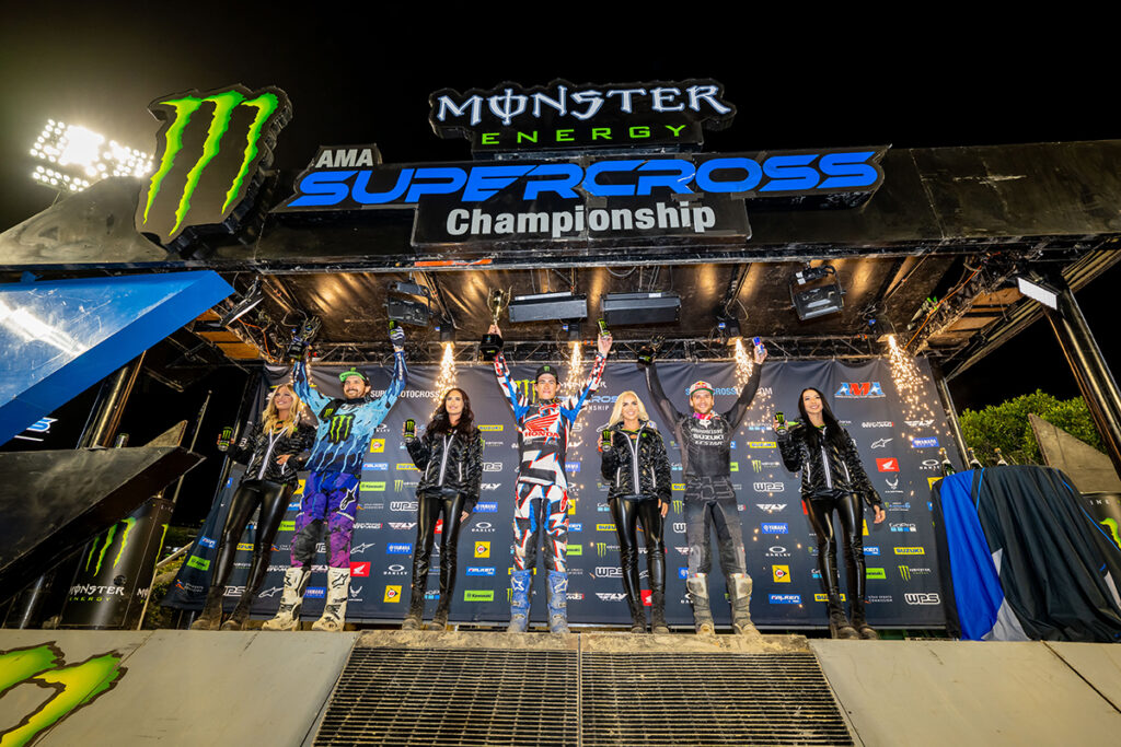 The first of three Triple Crown events in 2023 delivered night-long racing thrills with three Main Events in each class. Main Event finishing positions combine to earn event points toward the 17-round Monster Energy AMA Supercross season as well as the inaugural 31-round SuperMotocross World Championship series.