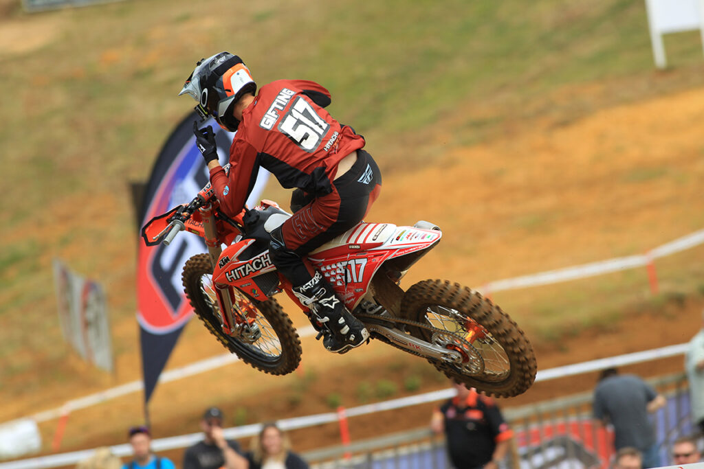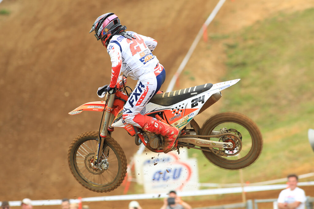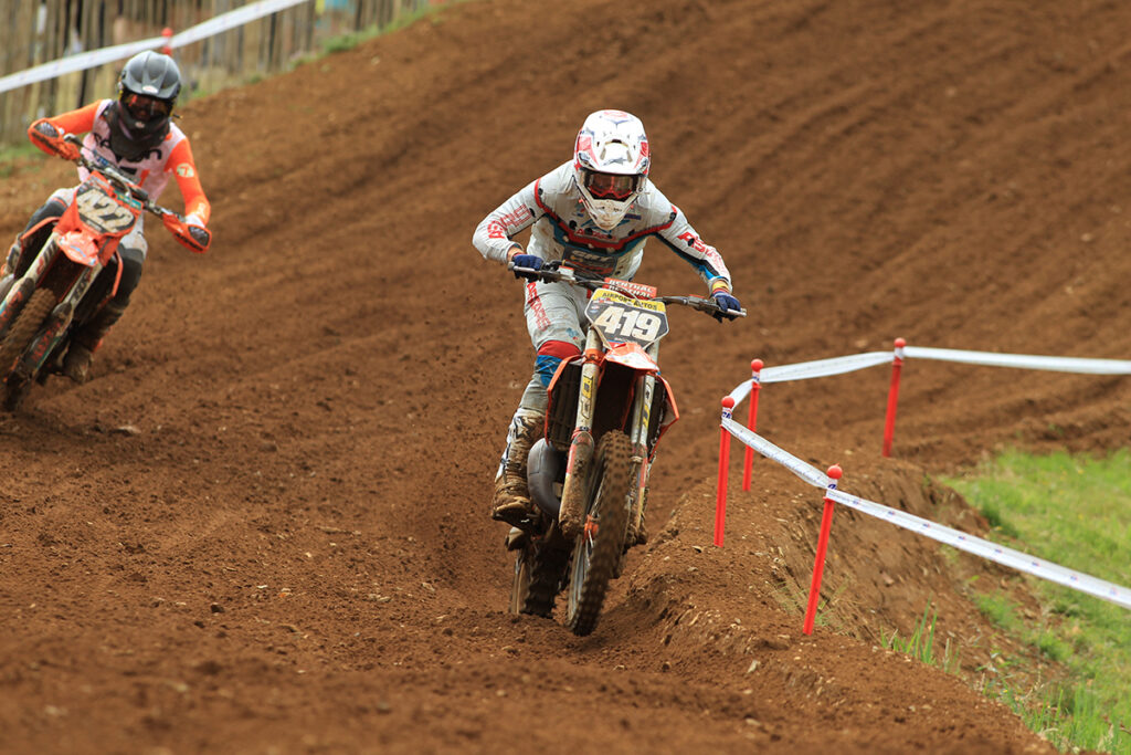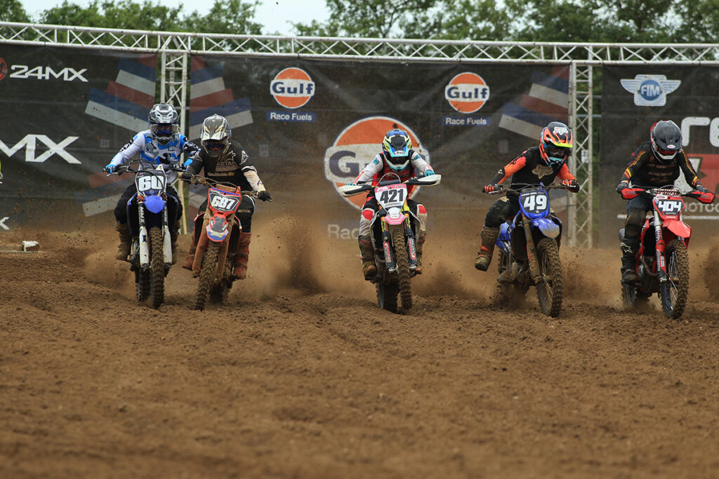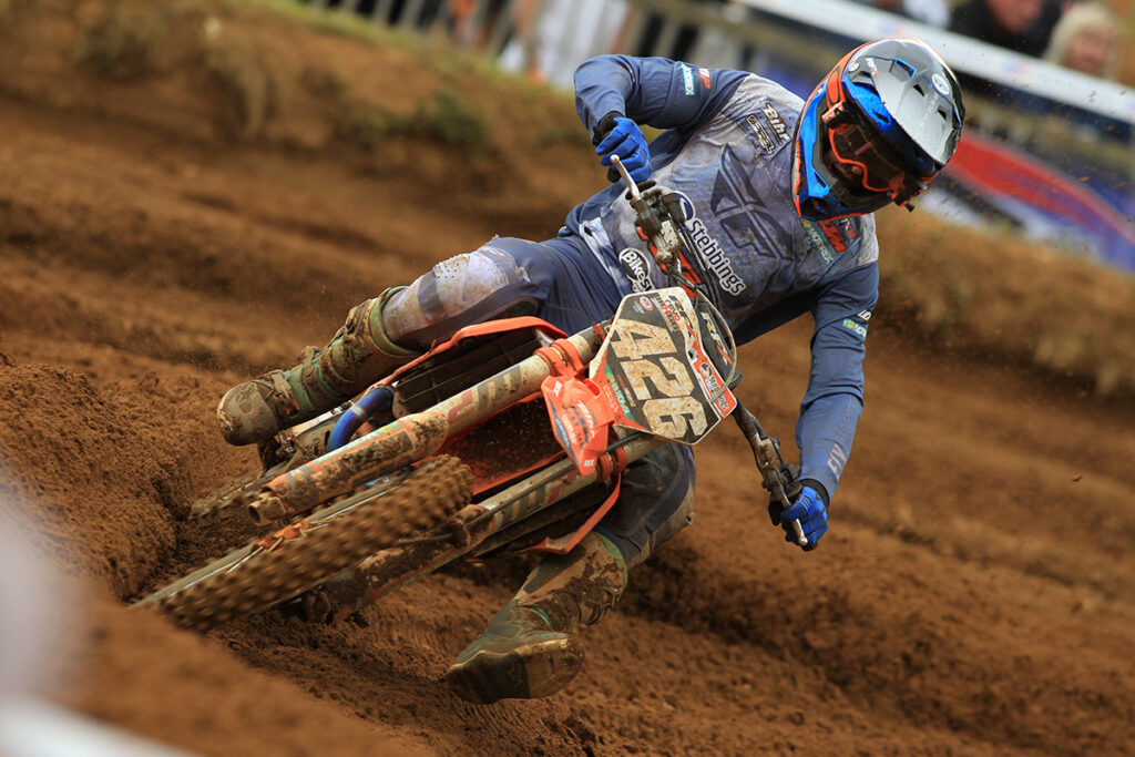 In the MX2 class there was a lot of close and intense action in both races, with the return of reigning Champion Conrad Mewse after a devastating crash at the previous round. In the opening moto it was series leader Isak Gifting who took the lead ahead of Conrad Mewse and Dylan Walsh, but drama happened in the middle of the race when Mewse suffered a bike issue that dropped him to fifth place and Walsh’s bike stopped and saw him retire from the race. Mewse recovered to claim second at the finish ahead Kay Karssemakers in third and Jamie Carpenter and Tom Grimshaw in fourth and fifth.