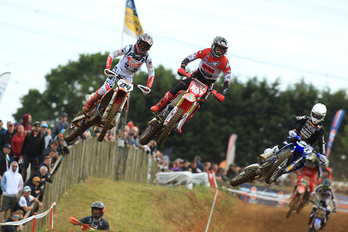 In the MX2 class there was a lot of close and intense action in both races, with the return of reigning Champion Conrad Mewse after a devastating crash at the previous round. In the opening moto it was series leader Isak Gifting who took the lead ahead of Conrad Mewse and Dylan Walsh, but drama happened in the middle of the race when Mewse suffered a bike issue that dropped him to fifth place and Walsh’s bike stopped and saw him retire from the race. Mewse recovered to claim second at the finish ahead Kay Karssemakers in third and Jamie Carpenter and Tom Grimshaw in fourth and fifth.