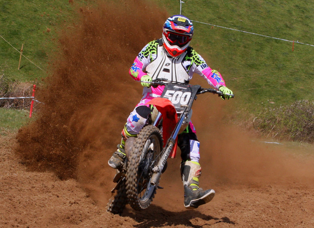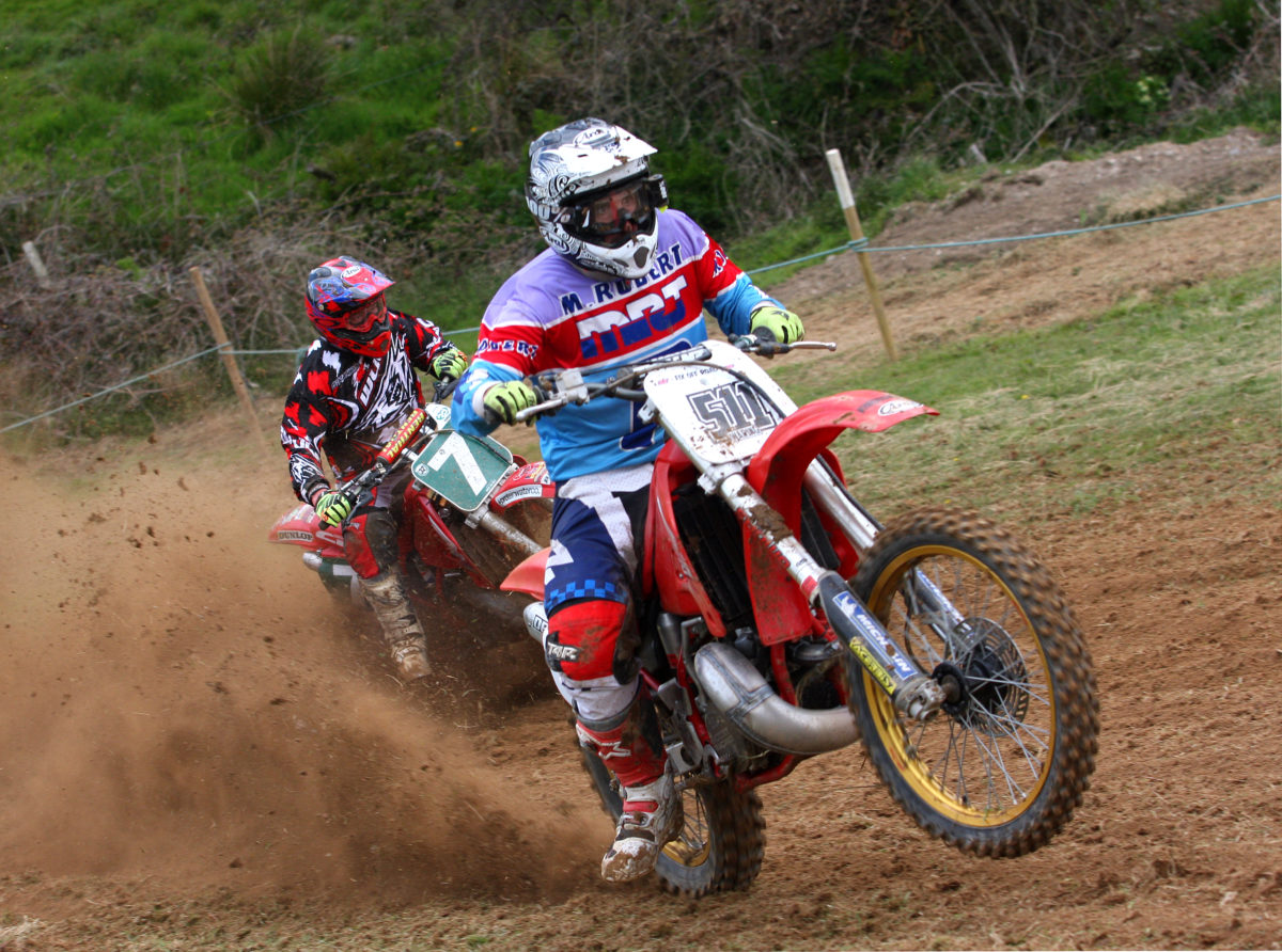 Luke Hill kicking up a roost in the Twinshock A class
