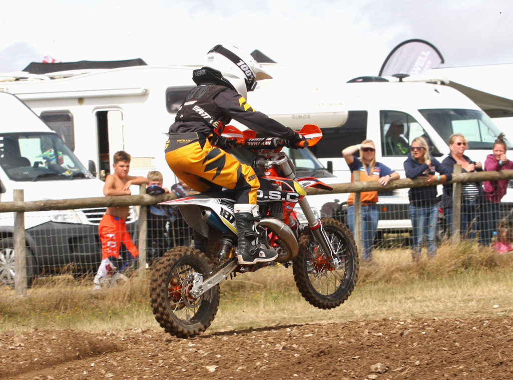 In the FXR Rookie class 2018 champ, ASA United Husqvarna’s Bobby Bruce was rapid to say the least and he was in unbelievable form in the 125’s going through the card for the overall and bagging a set of FXR kit with it and a full Pro Circuit pipe from Madison.co.uk Yep you heard right, a full Pro Circuit Pipe! Last year’s runner up and 2018 Big Wheel winner Jude Morris was a sure fire contender but he crashed out in moto one dislocating his shoulder. Get well soon Jude. Taking up the mantle though was Cab Screens Deos Group supported rider Joe Brookes who fired in with three great races for second overall. Harvey Cashmore kept his 2 stroke singing for third and X-Cast Media rider Josh Bassett rode well for fourth with a fine third in the final moto. Leon Ongley hammered home sixth overall with Alexander Mortada in sixth. Harvey James was an early podium contender but a final moto DNF relegated him to seventh. Jamie Collins was eighth, Jay Phillips ninth and Raife Broadley tenth.