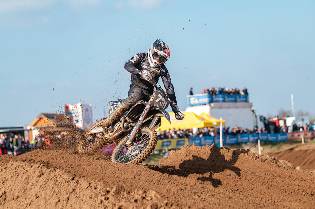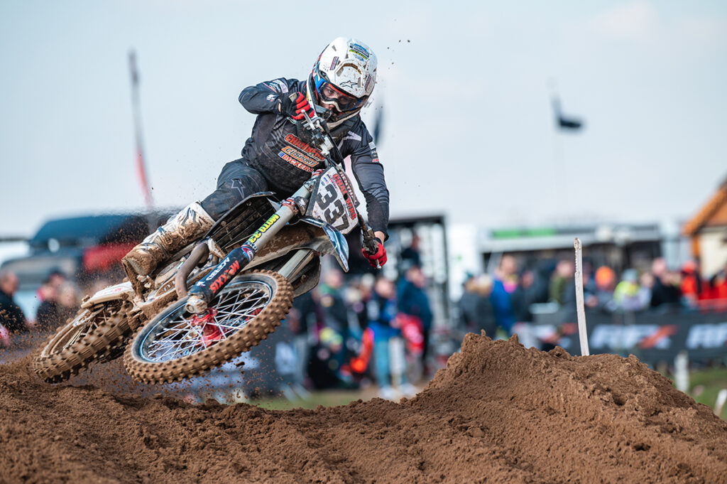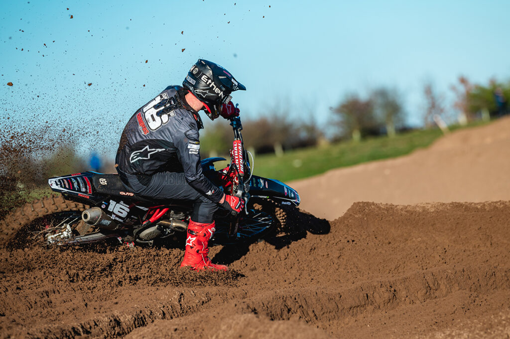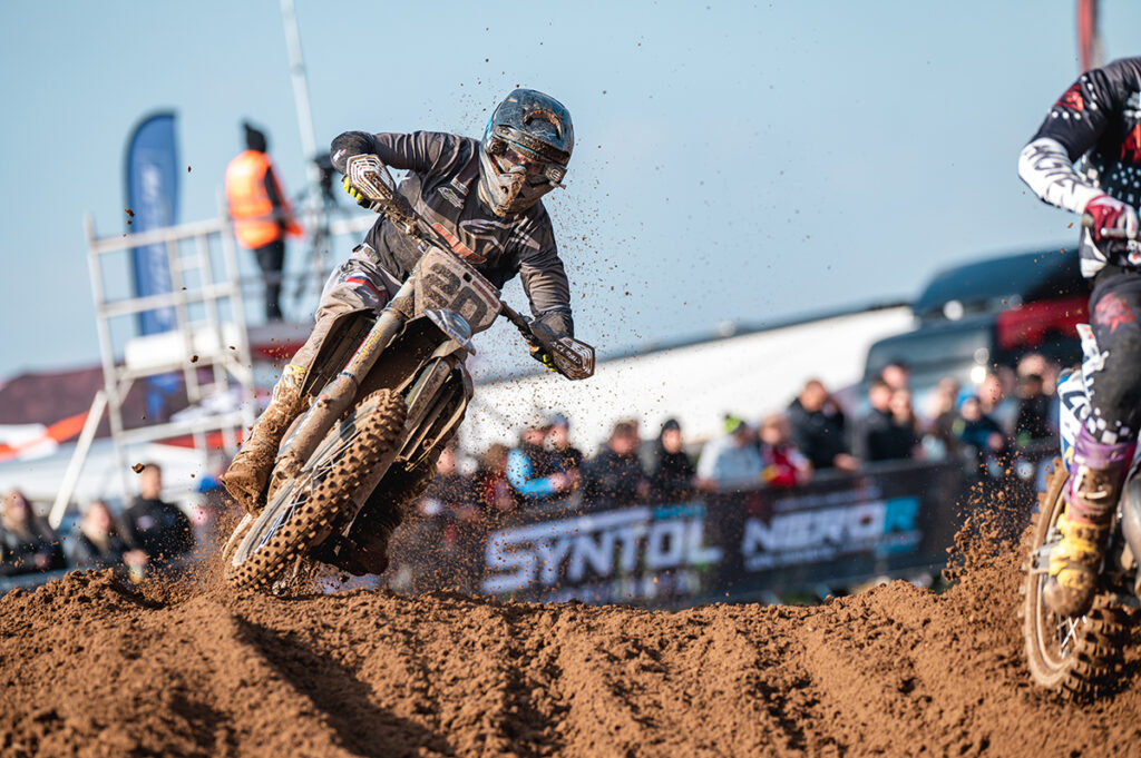 The sandy circuit was in good condition, under the spring sunshine. The weekend started with the qualifying sessions and in Fastest 40, Tom Grimshaw finished the session 7th fastest in the MX2 ahead of Alfie Jones in 9th place. In the MX1 class Glenn McCormick finished the session 17th fastest ahead of Ben Putnam in 18th. Meanwhile in the Youth 250 class Harvey Cashmore was 9th fastest.