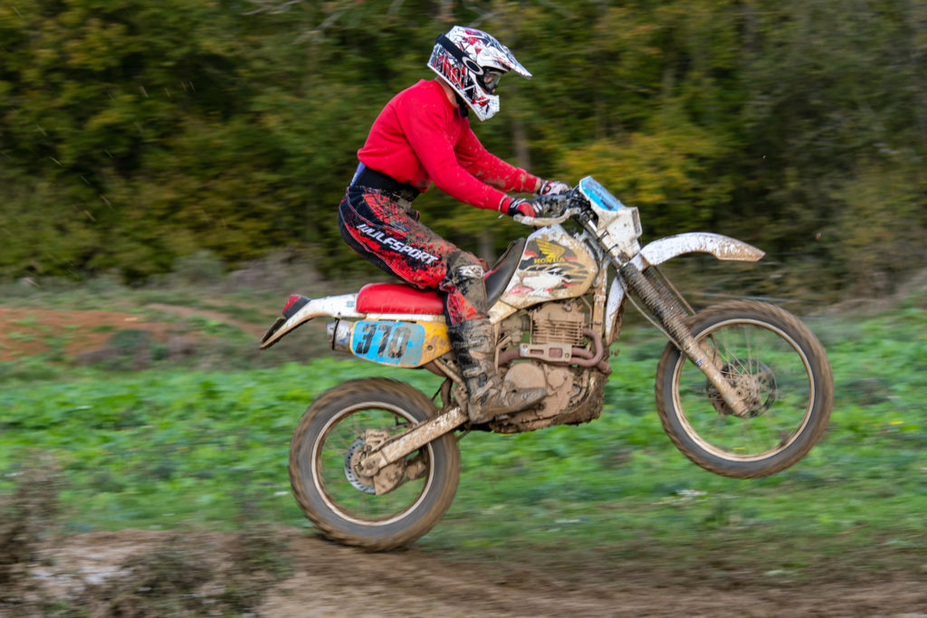 To “celebrate” the last race of the year, Lincolnshire Enduro Club put on one of the longest tracks in their calendar to end 2021. Taking place in perfect weather at Dembleby Heath near Grantham, the 130 riders faced a well sorted eight miles of stubble fields, a small quarry area, and a few water splashes thrown into the mix. The venue is now well known for its super fast pace, with only minor excursions into the local woodland to slow the pace this time.