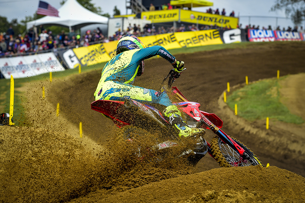 In the MX2 qualifying, Team Spain’s Guillem Farres took the holeshot ahead of Team Netherland’s Kay de Wolf, though were both quickly passed by Team USA’s Justin Cooper who was on a mission to deliver a top result in front of the home crowd.