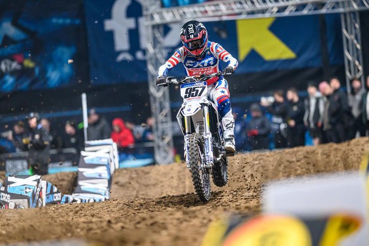 So although you have a plethora of French specialists in there – 10 from the 24 racers in total – there are also a handful of World Supercross riders present, such as 2014 MX2 World Champion Jordi Tixier, Italian star Lorenzo Camparese, former American Arenacross Champ Tyler Bowers – who rode for team USA at the 2023 VMXdN Foxhill event – three-time Arenacross UK Champion Thomas Ramette, Aussie star Matt Moss, and Britain’s own Jake Preston, who gave us these thoughts on the series: