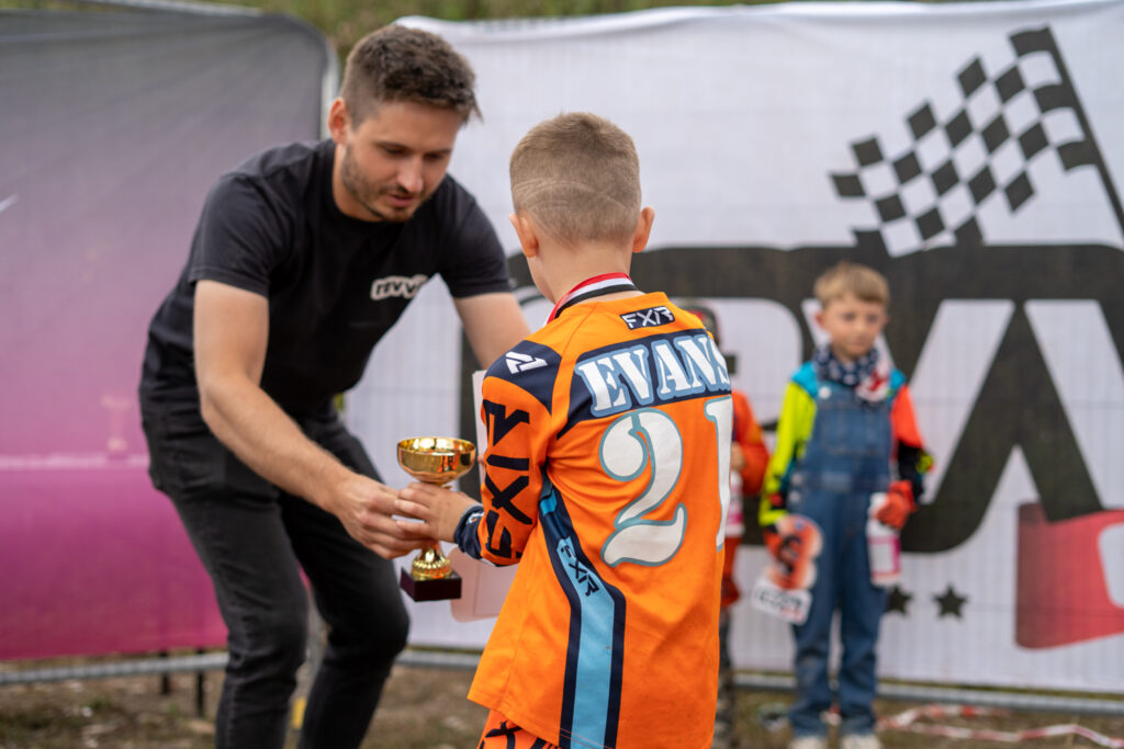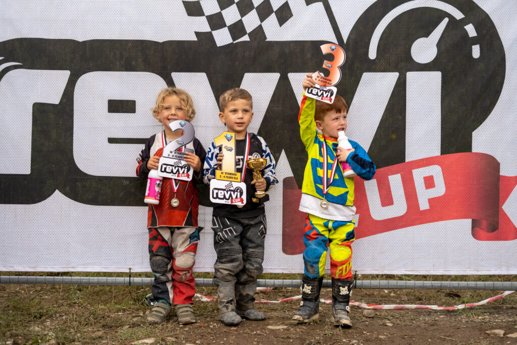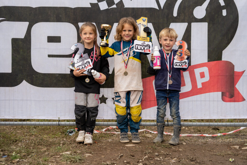 At the excitable presentation that followed the racing, Revvi owner, Don De Graff presented every rider with a medal while Chief Lapscorer Kay Wells awarded Nancy Hanby with the rider of the day award for riding all day superbly and finishing second in the super tough 16″ Standard 5-6 A Final. Nancy would win a set of FMF goggles courtesy of sponsors Madison, as did Zavier Cunningham, who saw a little fallen rider at Friday evening’s Electric Ride day, stopped to pick them up and check they were ok. Well done Zavier! The top three of each class were also awarded a bottle of Duck Smart Kit Cleaner. Thank you to Gary, Dave and the team at Duck Smart for their support.