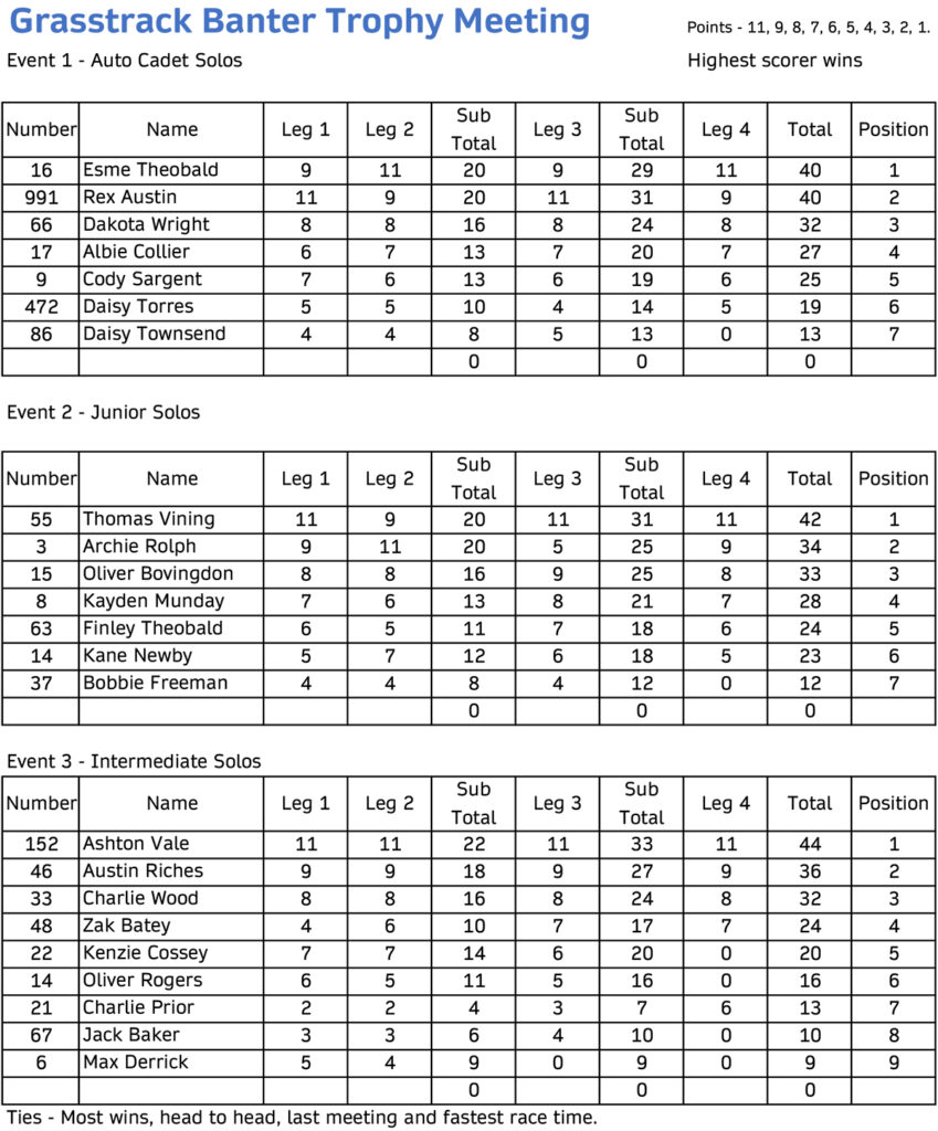 There was no doubting the winner of the Youth Intermediate class as Ashton Vale won all four of his heats with Austin Riches and Charlie Wood taking 2nd and 3rd places respectively during each outing. So with the above lads in such fine form. It meant that recent ACU British Champion Zak Batey had to settle for 4th overall with Kenzie Cossey and Oliver Rogers the next best.
