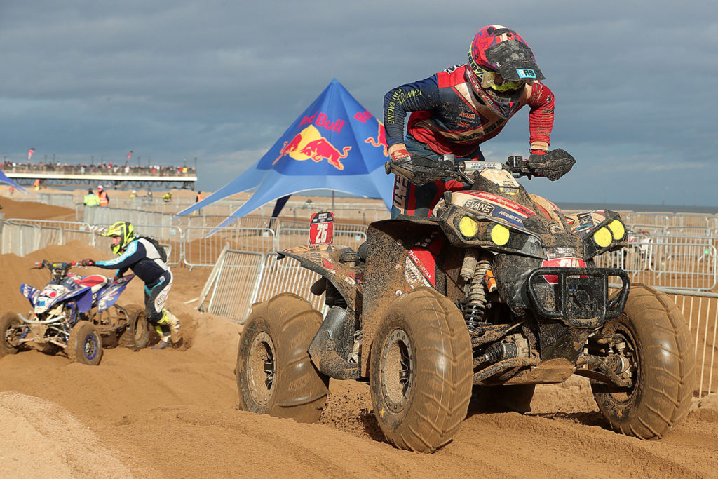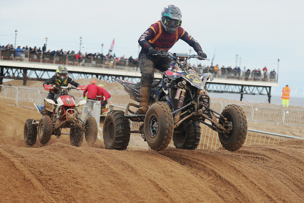 Seal though was displaying superb determination and resilience and refused to be pushed back, regaining his race leadership on lap four. Unfortunately as the contest then unfolded, early contenders Hall, Sansom and Morgan were all to be forced out of proceedings with mechanical issues on laps 15,12 and 7 respectively thus giving the leader some relief and breathing space. From here onwards, Seal controlled the contest in style to take the win one lap ahead of Kelly making his third Skegness appearance as Meenagh completed the podium. With James Bevan getting home in 4th, next up was Simon David on a 4×4 Quad machine. This was the first year that the Skegness event featured a separately scored class for the big 4×4’s and naturally David was elated with his fine victory. Completing a total of 20 laps, Harry Hinkley finished on the same total with Harry Stevens, Wayne O’Brien and Danny Gilligan next up.