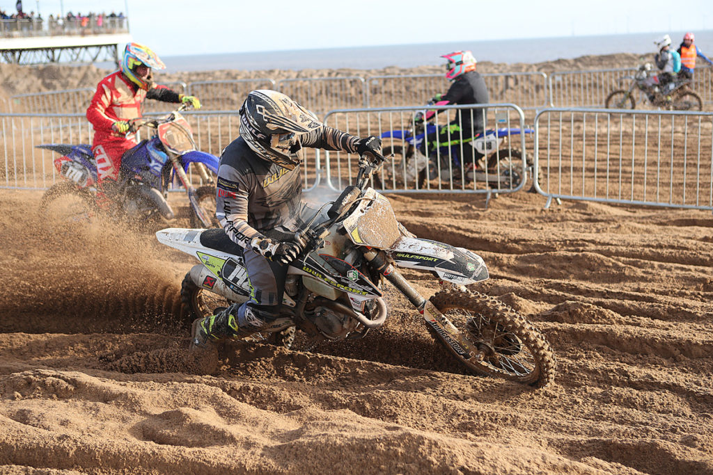 Beach racing though can be a lottery and in what was now a brutal Skegness contest which was reaching its conclusion, there was to be some significant changes in the leading positions. Nunn who had held a great 2nd place for the majority of the race dropped down to 6th before disappearing on lap 29 whilst the unlucky Brad Thornhill went out with less than 5 minutes remaining and when holding 4th. Moving into that vacant position though was Skegness regular Ryan Crowder. Having had a strong season competing in Enduro action, Ryan probably enjoyed the tough going in recording his best Beach race result so far!