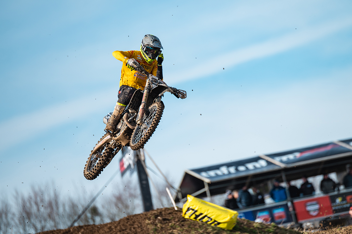 Tom Grimshaw – 5th Overall – It’s been a good weekend here at Matterley for the EMX Open, the track was really technical due to the rain leading up to the event, which made for a lot of lines in the corners, and it was good for racing. In the first race I didn’t get the best of starts as I lifted out of the gate due to the power of the 450 but I managed to charge through from the mid pack start and get up into the top 10 and was pushing to get past Liam Knight but I couldn’t get the pass done and then towards the end I saw Brad Anderson coming and couldn’t hold him off which was a shame but I was happy with the 9th place in my first 450 race. Then in the second race on Sunday I got a better start and was just outside the top 10 but the sun was really low so I kept it steady until the sun got better and I was on the back of the Brit’s and managed to get past them this time and got into 5th and was pushing for 4th but I ran out of time and tear offs at the end so crossed the line in 5th which I was really happy with for my first time on the 450 and I got some great experience and loved every moment of it.