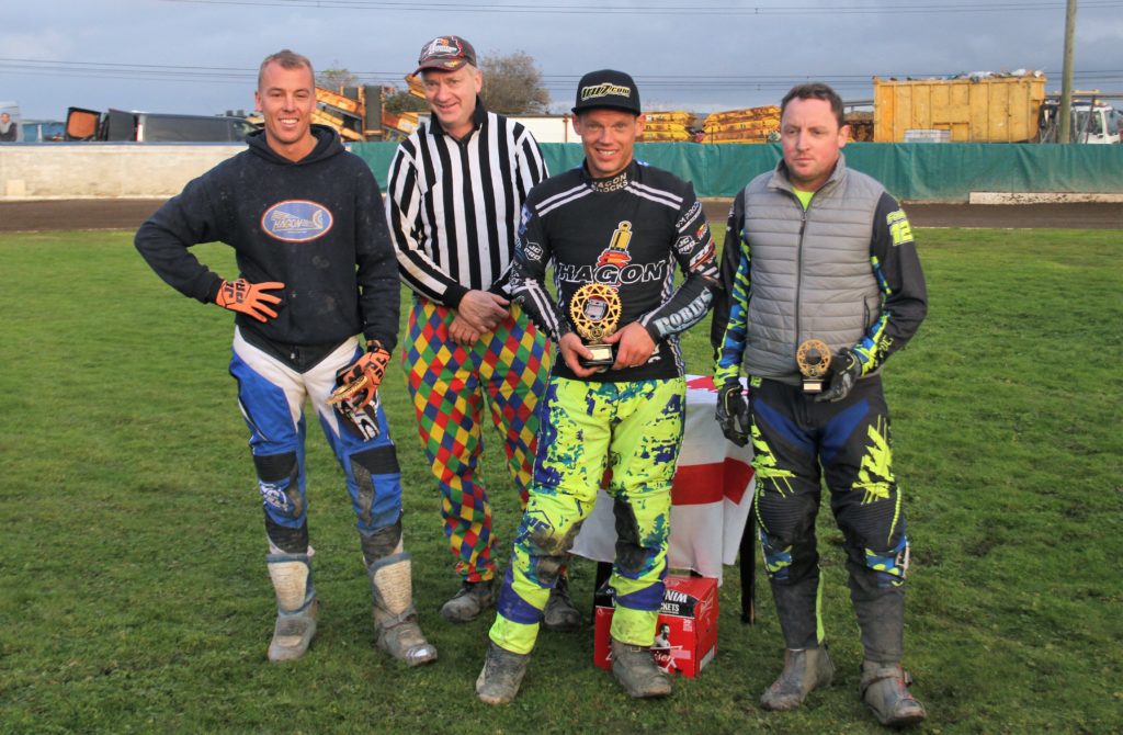 Taking the maximum 50 Grand Prix points Edward Kennett (1st) now leads the new championship by one point from “The Missile” Charley Powell (2nd) who had past Paul Knott (3rd) on the last lap of the 6 lapper mega show-down, with Godden, Dugard, & Berwick only inches adrift of the podium.