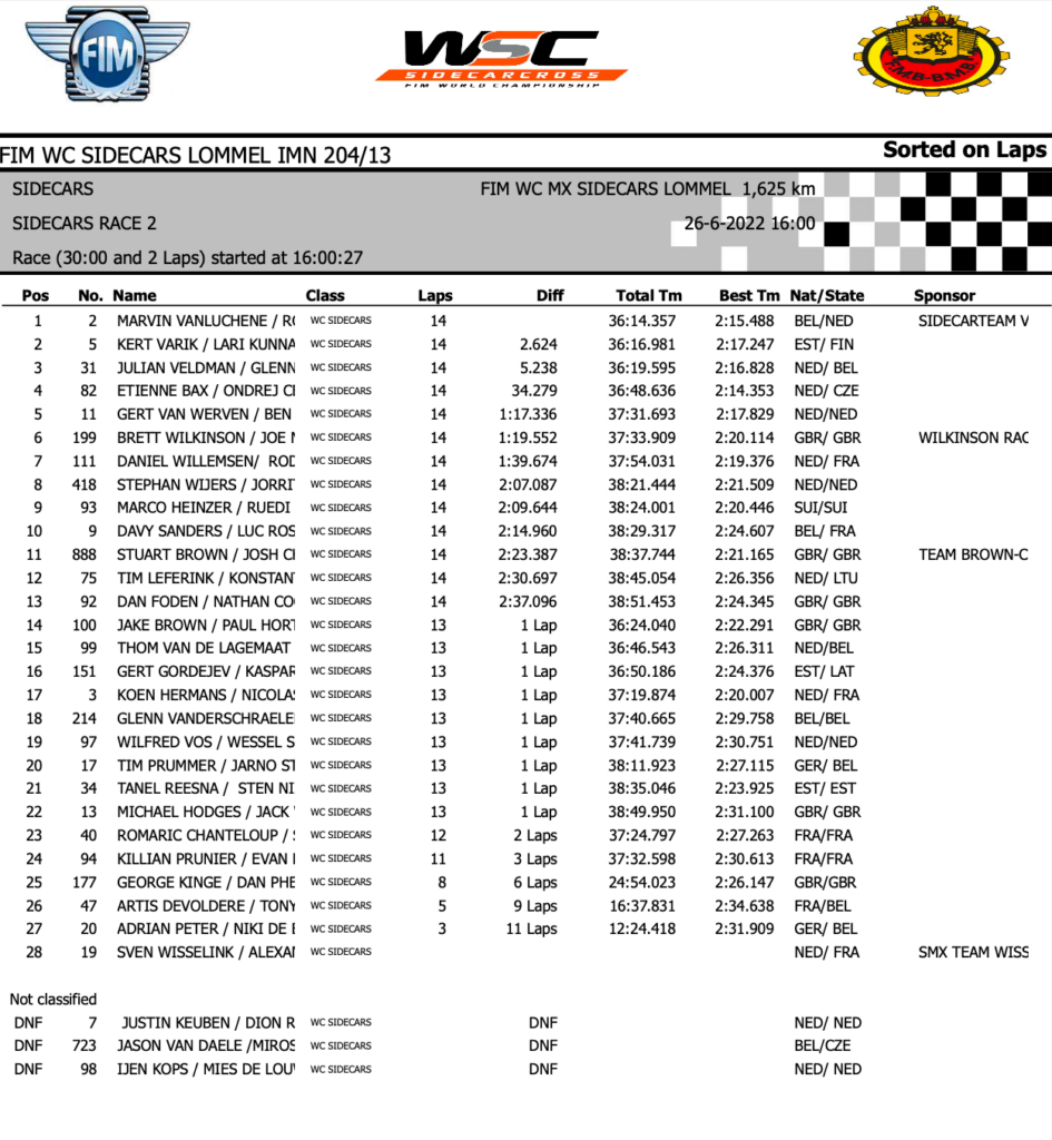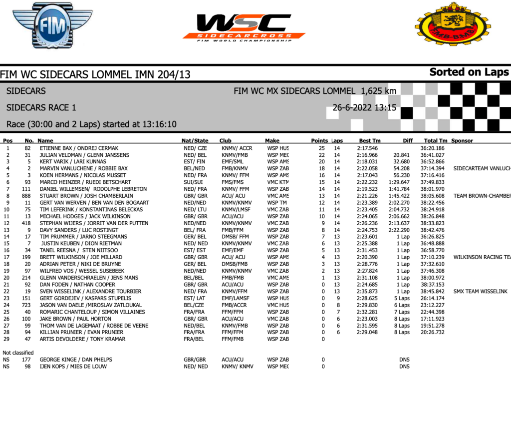 Lap thirteen and it was game on as Veldman closed to within four seconds of the leader Bax. Amazingly, the gap had widened again next time around, so Etienne Bax/Ondrej Cermak were holding their own here just when they needed to. Kert Varik held a strong third, far enough ahead of Hermans and Vanluchene not to become stressed.