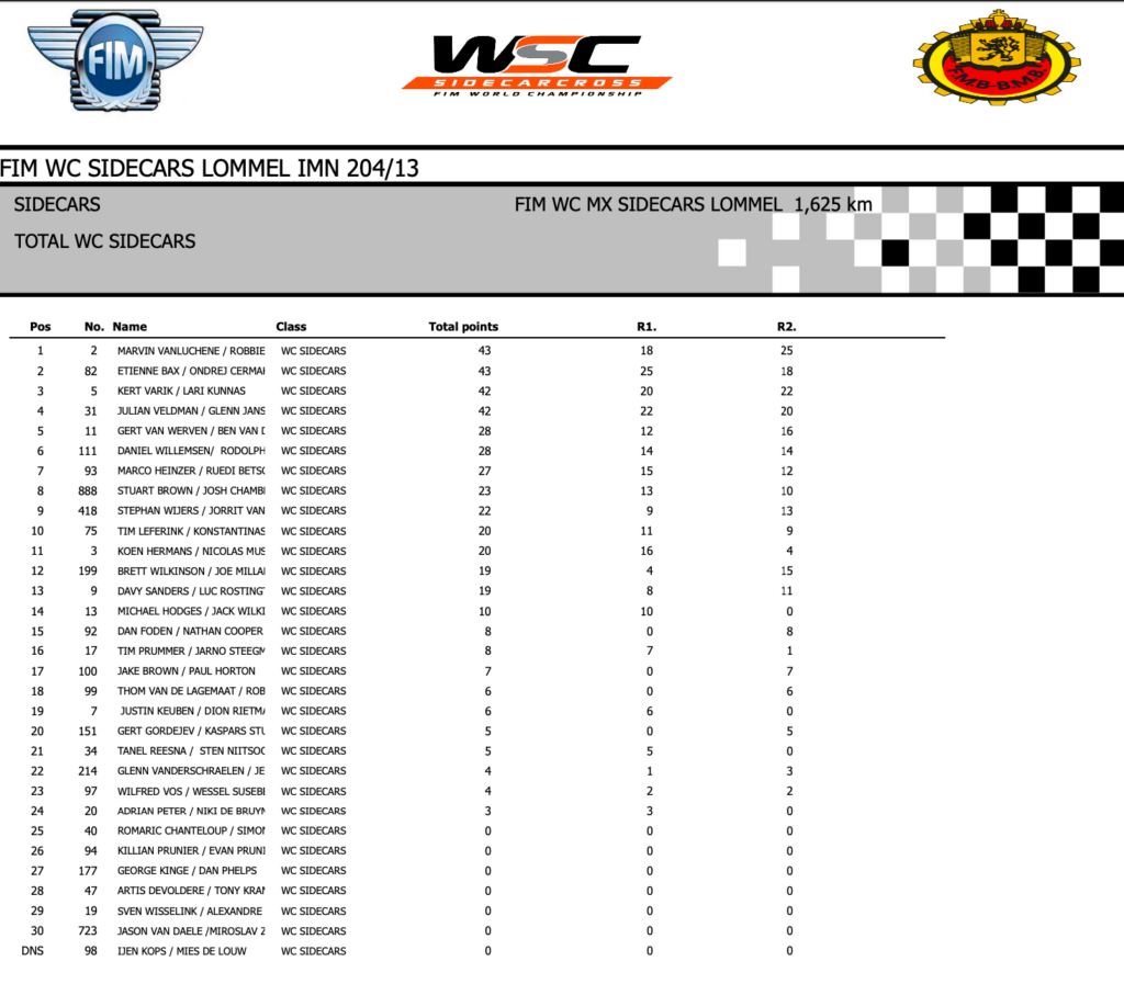 Varik pulled the pin and held second place ten seconds behind Marvin Vanluchene/Robbie Bax. This would earn him joint overall on points with Veldman but third overall on a better race two result.