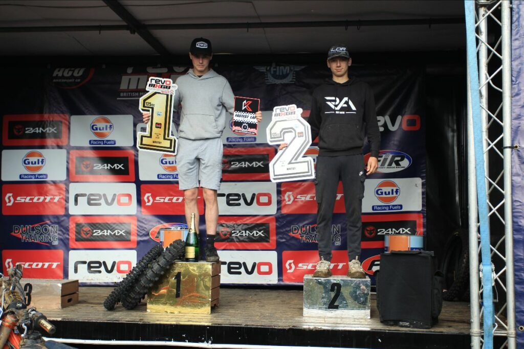Overnight rain on Saturday night left the Whitby track extremely muddy and tricky for the remaining races on Sunday. In the first of the two 125cc races, Heyman took a strong start and the early race lead on the second lap. After extending his lead at the front of the field he was forced to lose his goggles and made a quick stop to get new goggles and returned on track to claim victory by over 30 seconds.