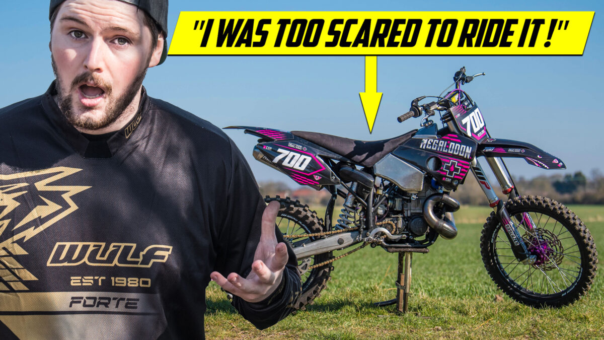 That is exactly what happened to Max from the 999lazer YouTube channel – who built the Megalodon 700cc 2 stroke dirt bike. Check out their latest episode to see if Max can overcome his fear of the beast and pull the wire tight on the monster smoker!
