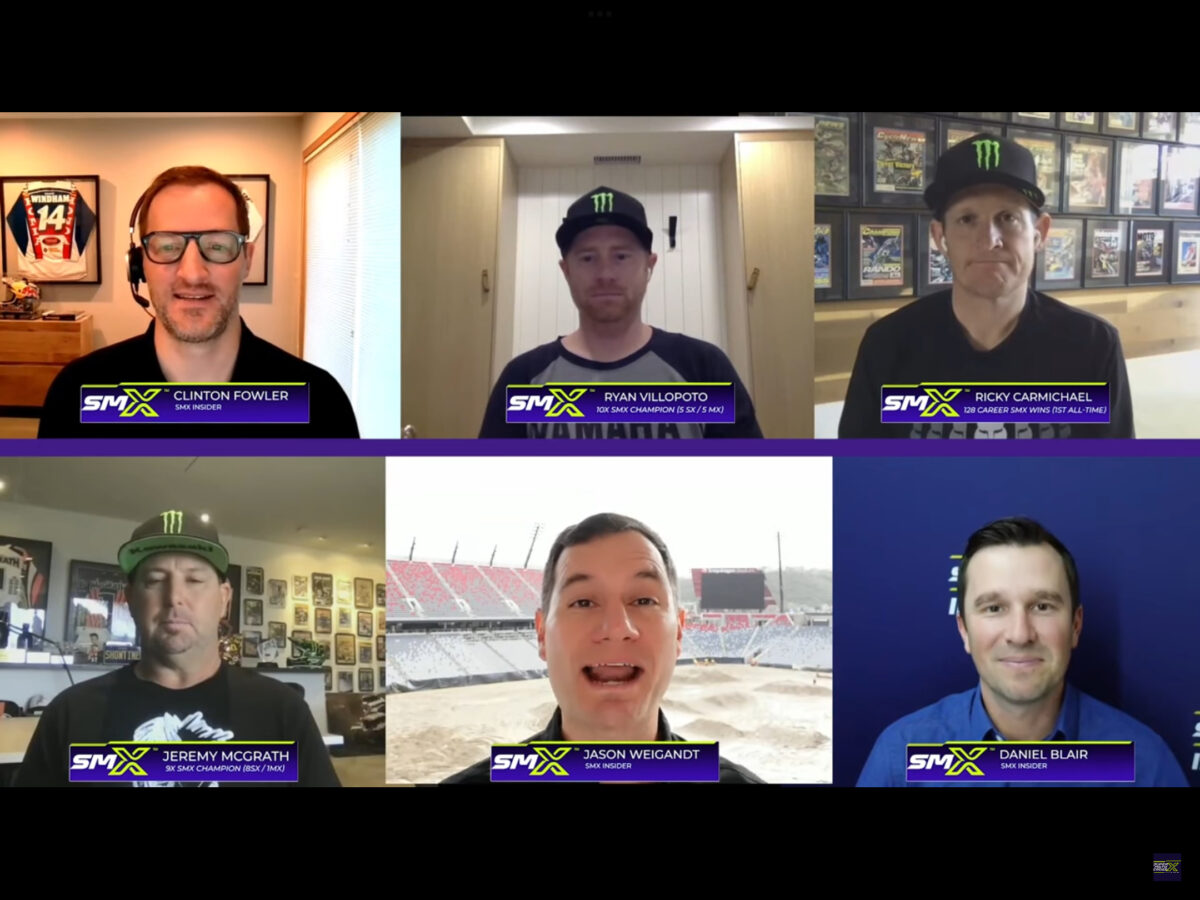 Call it a Champion’s Edition of SMX Insider! Jeremy McGrath, Ricky Carmichael and Ryan Villopoto join SMX Insiders Jason Weigandt, Daniel Blair and Clinton Fowler to share their thoughts on the top stories in SuperMotocross.