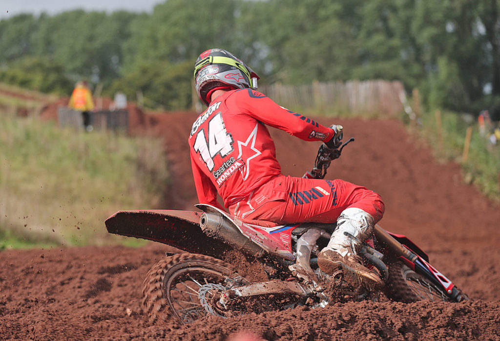 However throughout that period, the organising Wrekin MXC were always adamant that the event would definitely go ahead, a very bold statement to make considering the awful weather! To their ultimate credit though, the Club’s judgement proved to be spot on with track conditions totally raceable and the meeting able to be completed so well done to everyone involved. With the event done in this short series powered by Datatag and supported by Dunlop, its Luke Burton (Geartec Honda), Jamie Wainwright (Wainwright Plant and Haulage KTM), Shane Carless (FUS Marsh MX Husqvarna), James Lane (LRT Midwest Husqvarna) and Joel Fisher (MRS/Suomy KTM) leading the charge to the titles.