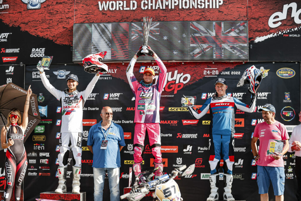 GASGAS Factory Racing’s Andrea Verona finished as the runner-up in his home race, while Honda Racing Redmoto World Enduro’s Nathan Watson claimed his first EnduroGP podium of the season with third.