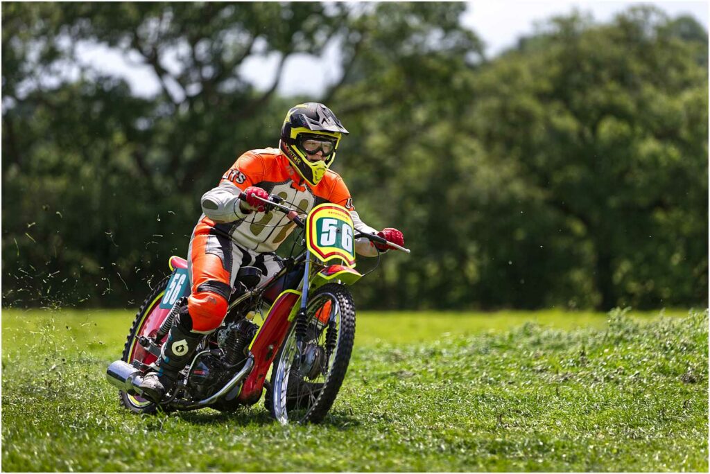 Nantwich’s David Binns would split Gwillam and Broadhurst overall in 2nd place finishing 1 point behind Broadhurst. Young charger Jake Breeze rode consistently in the heats to take 4th despite a spectacular slide off over the finish line in his 2nd ride. Stephen Mace had an eventful afternoon. The man from Shrewsbury had a fall in practice, snaping a clutch leaver and with no spare, he was gifted one from the Broadhurst toolbox meaning he could race. Mace would take a race win in his opening ride and rode consistently all afternoon to take 5th overall. But disaster would strike in the Final when mace would fall on bend 4 lap 4 whilst lying 3rd, calling an early finish to the 6-lap final and gifting Nick Bull 3rd place behind Broadhurst and Gwillam. Minsterley’s Colin How would round out the top 6 with a typically consistent run of form.
