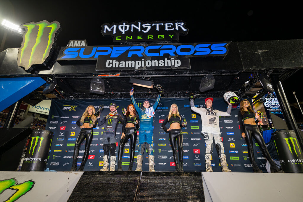 The crowd inside Raymond James Stadium witnessed a battle of determination that saw Webb take over the lead late in the race from second place finisher Team Honda HRC’s Chase Sexton.