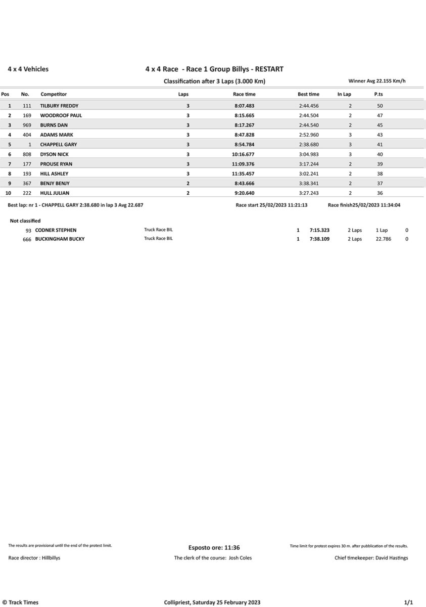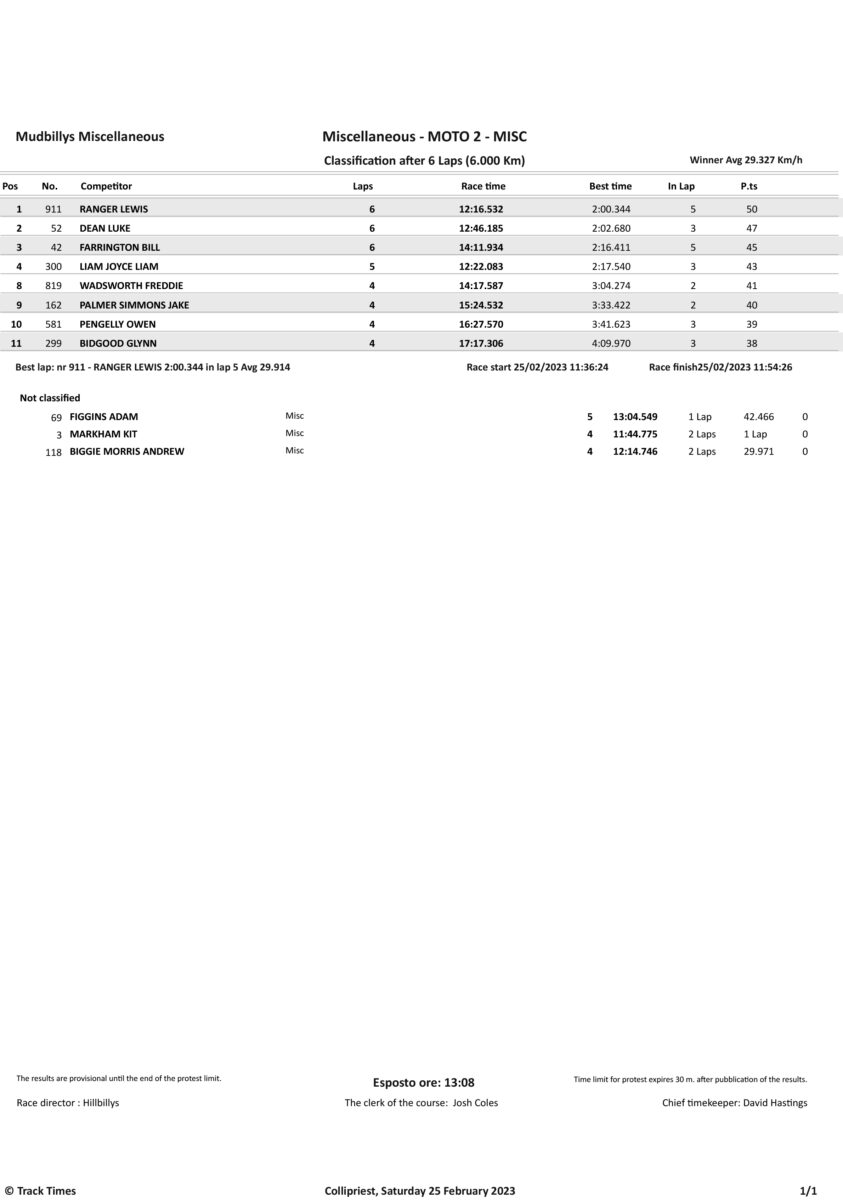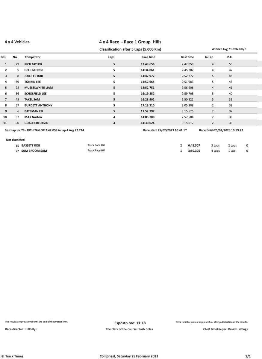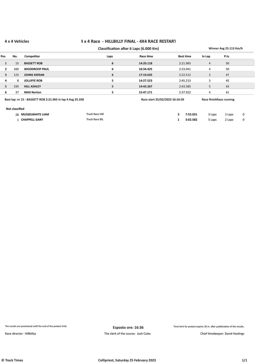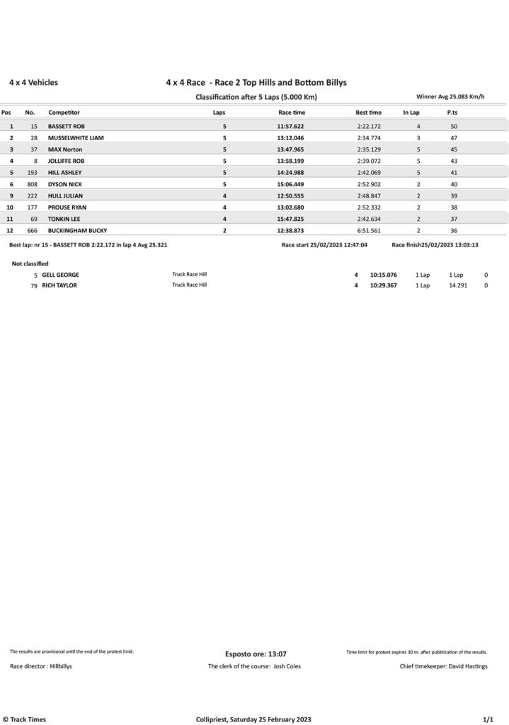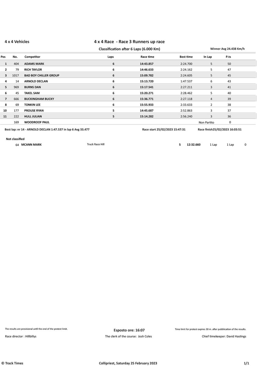 Take a look at the Race Results and Overall standings from the day…