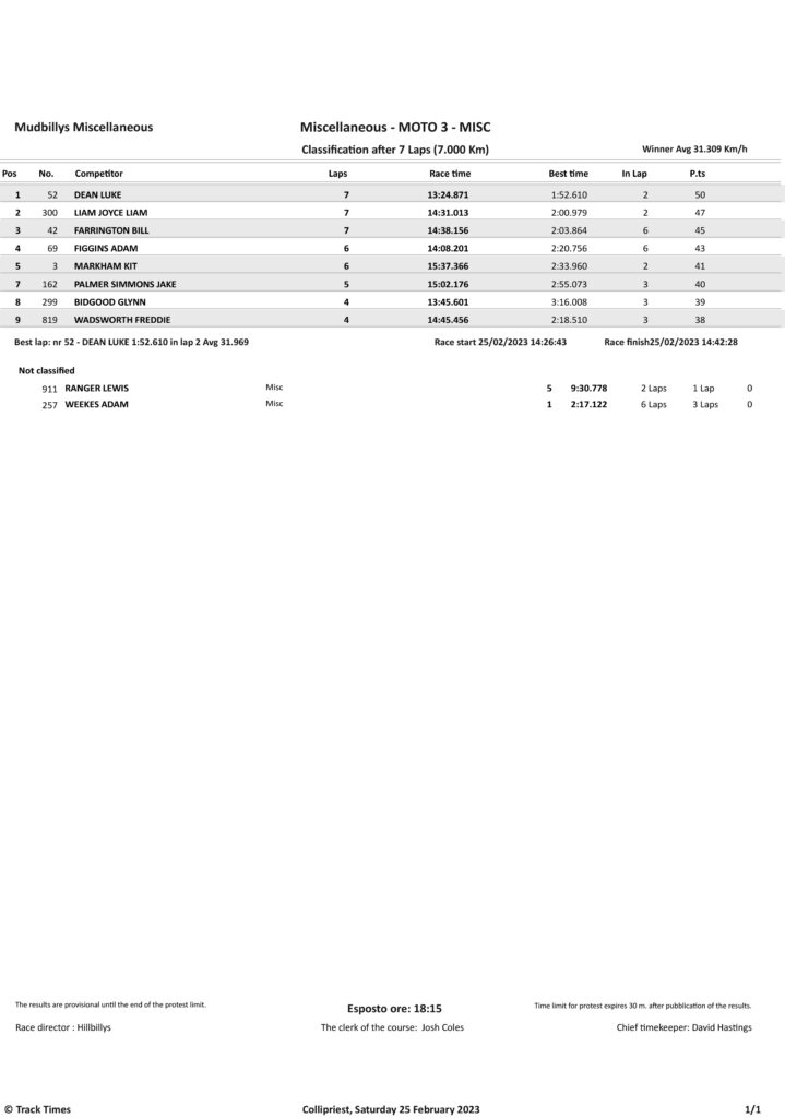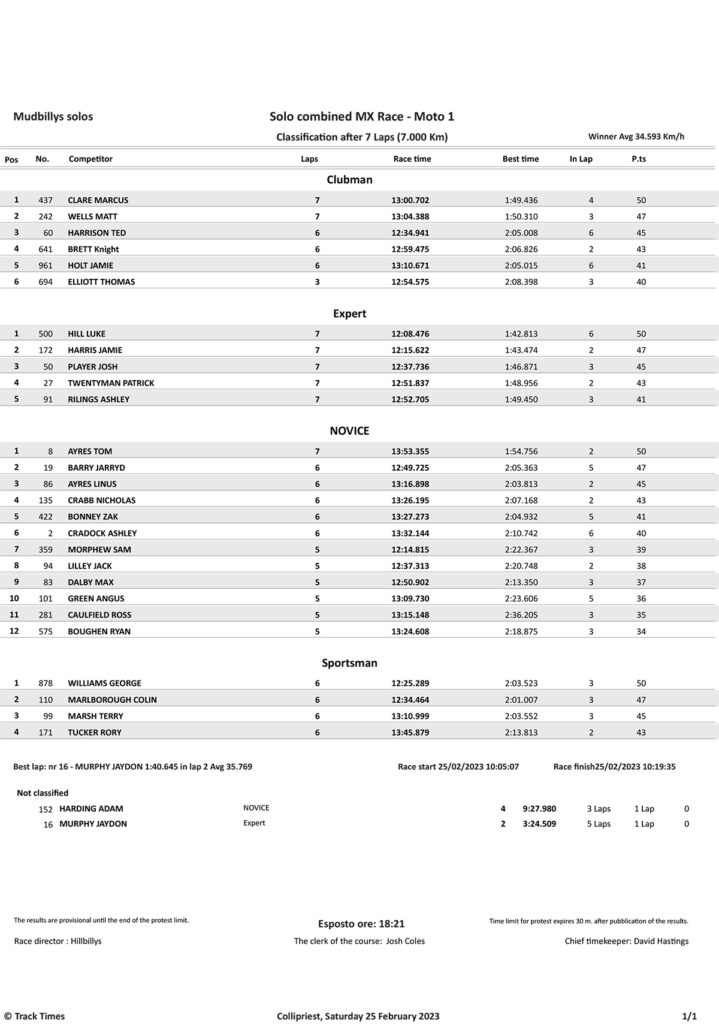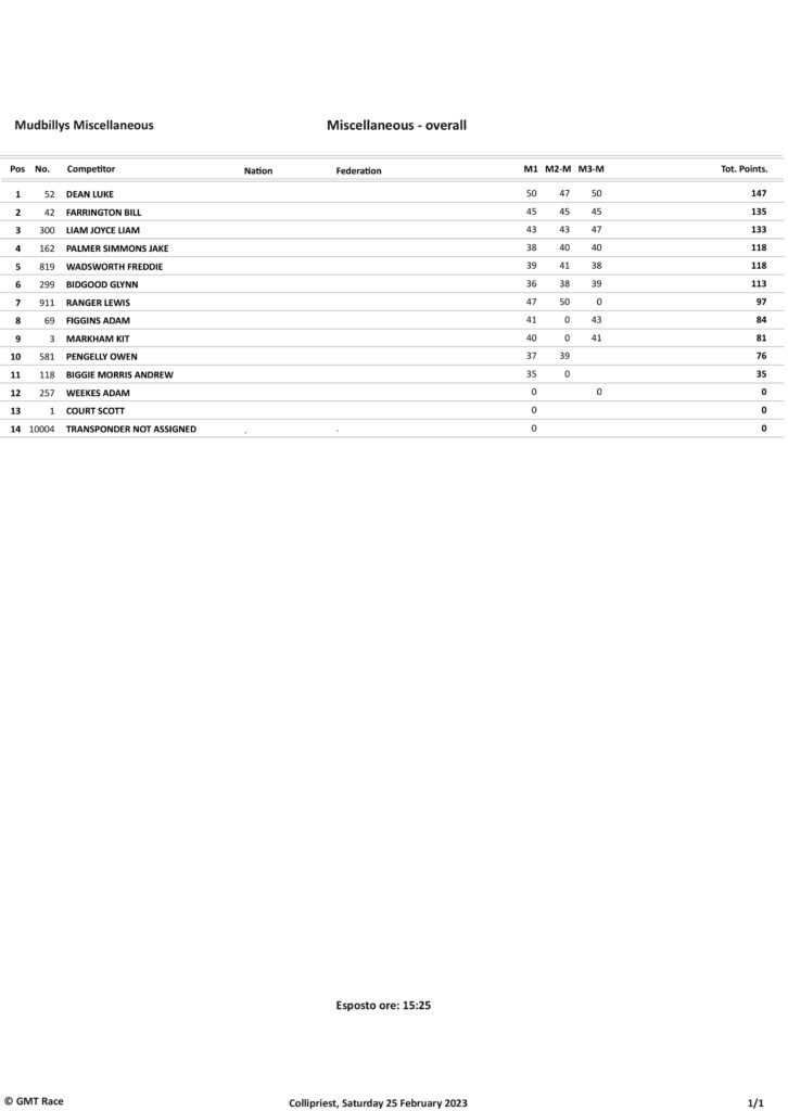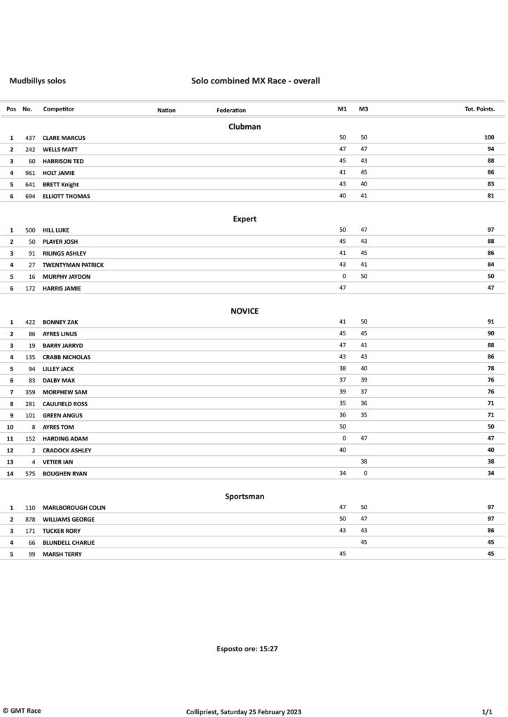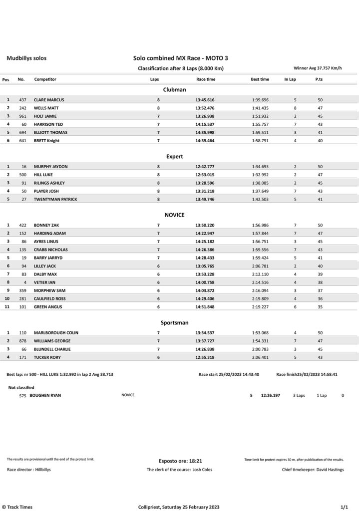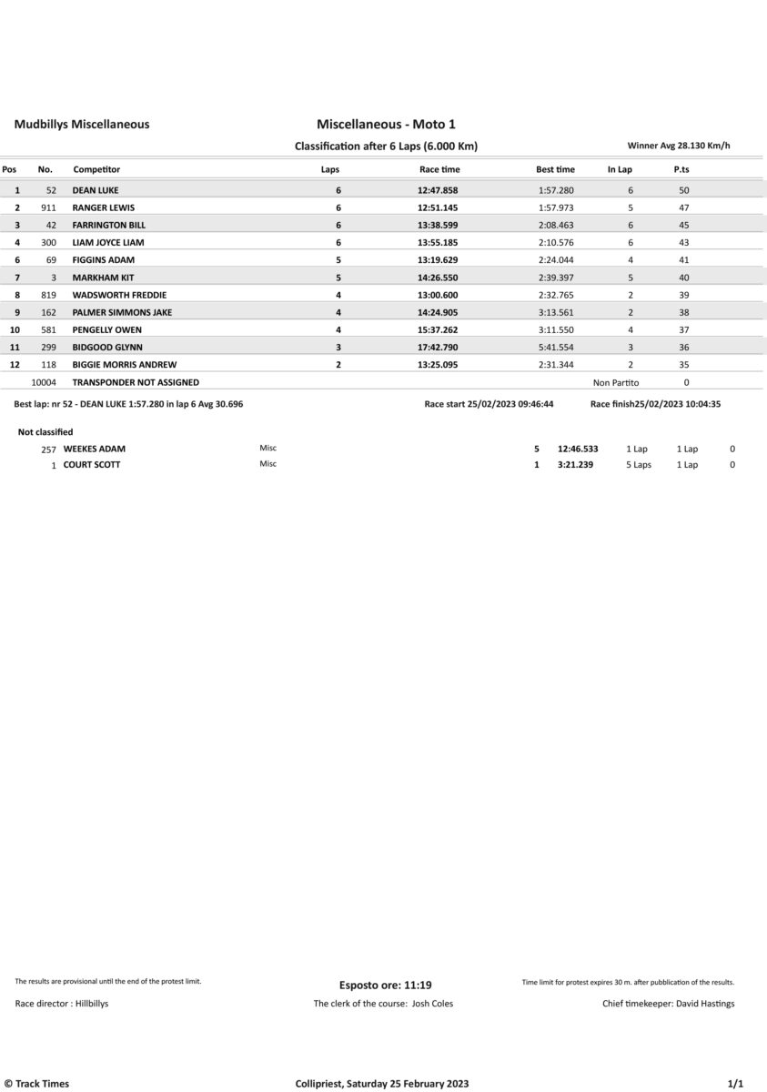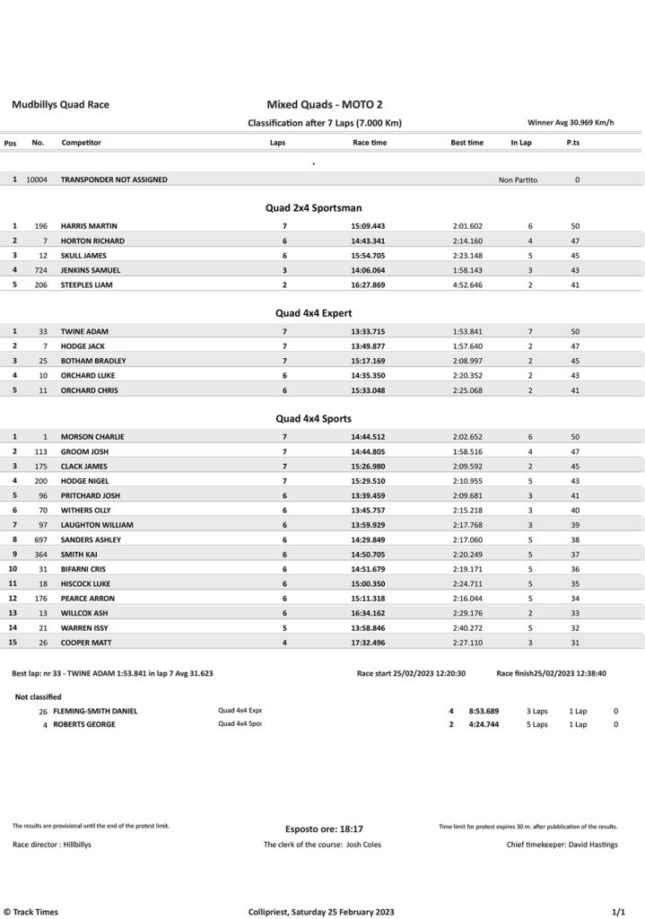Take a look at the Race Results and Overall standings from the day…