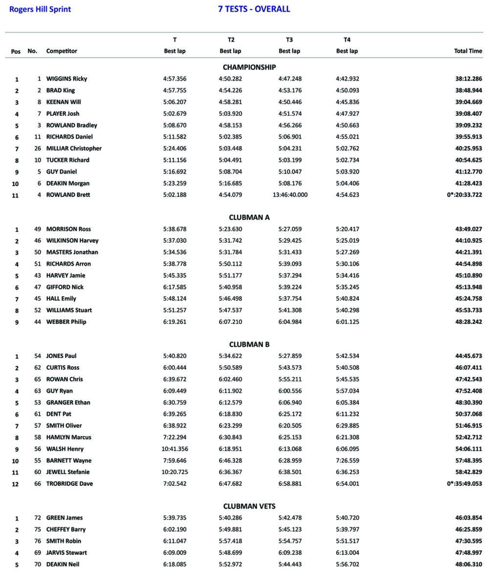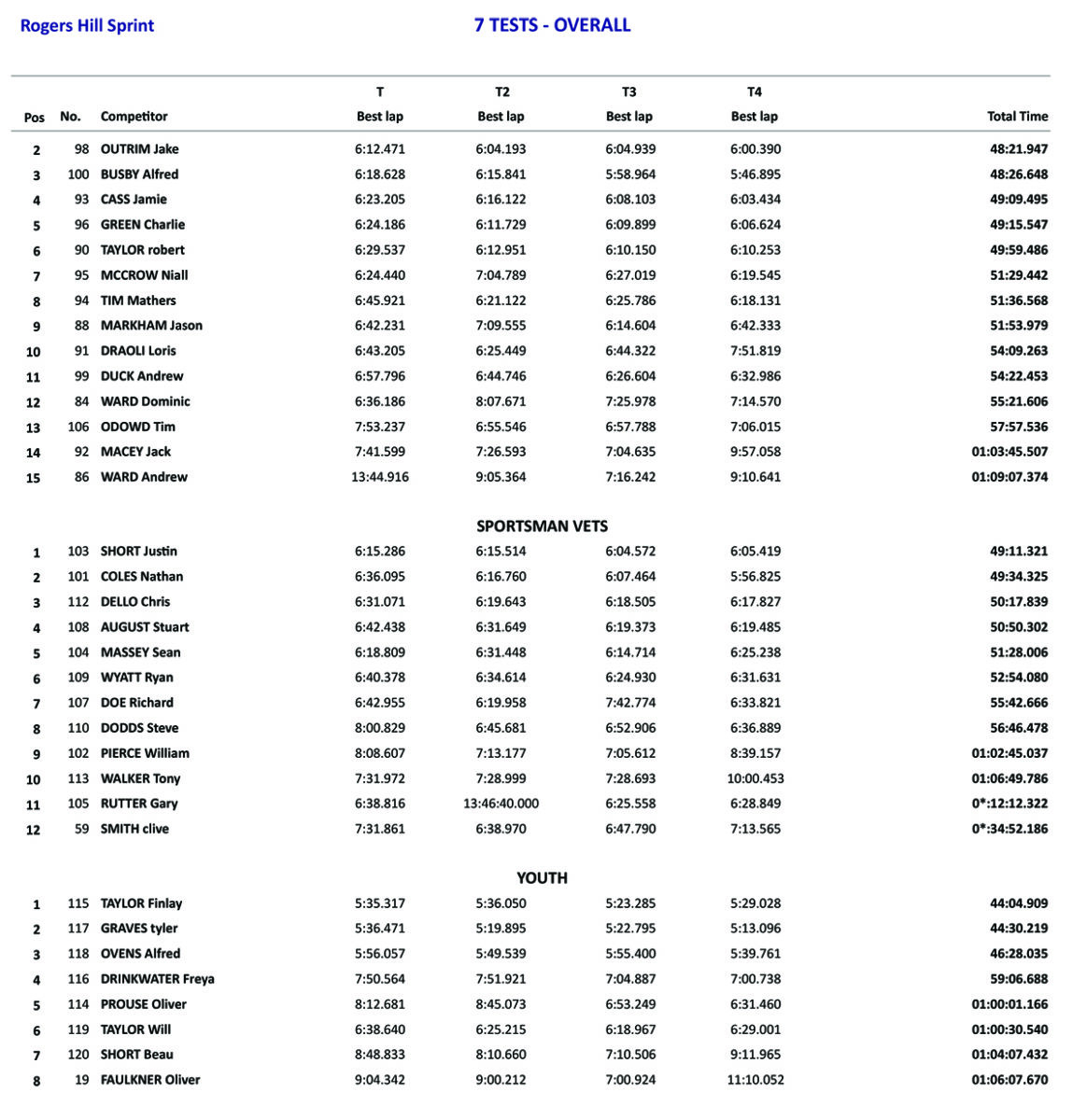 Maciej Caputa won the Sportsman class by over a minute and half with some consistent test times! In second place was Jake Outrim who held off close competition from Alfred Busby, giving him the points, he needed to take the overall sportsman championship. Alfred was third on the day just 5 seconds off 2nd.