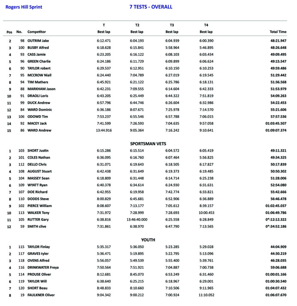 In the Expert vets’ class, there was also a close battle for 1st place, with James Ovens taking the win over Darren Kiff by only a second over the 8 tests! In third place was James Drinkwater who managed to acrew enough points to take the Expert vets championship win.