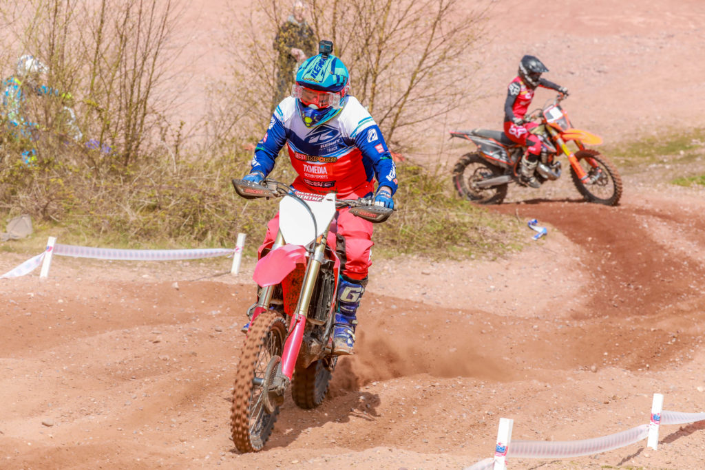 Something quite different from motocross but combining two motos each held over one hour the fittest riders stand out favouring those seasoned enduro riders. Tickhill quarry is somewhat an all year round venue with a hard sandstone base sat under, in places deep sand, in other gravel and some parts clay so it proved to be quite a challenge for some. None more so than the deep sandy sections. Having said that the course set out by Paul Minihane was generally a slower speed circuit averaging out at about 5 minutes a lap with the exception of the top expert riders putting in laps closer to the four-minute mark and nothing up 15 laps in the first moto.