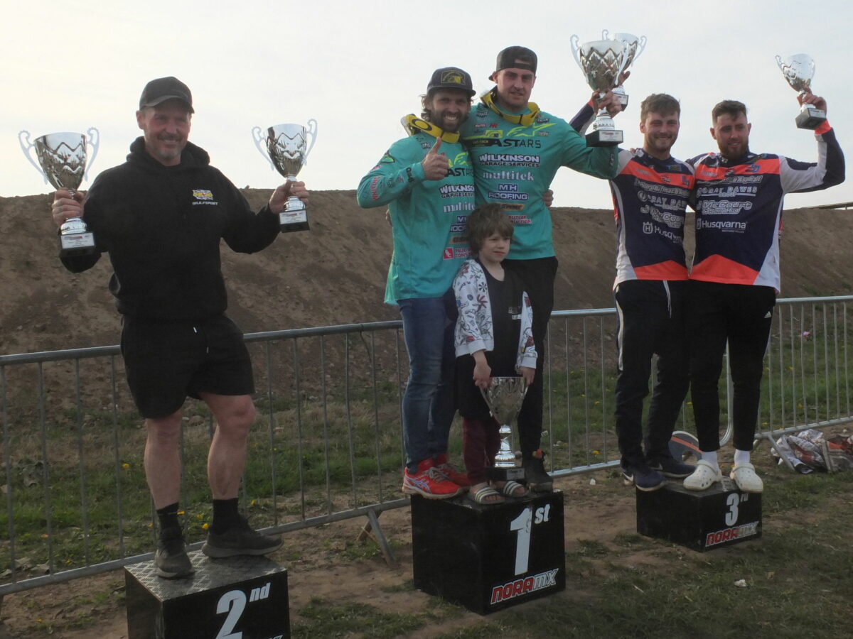 In the last championship race of the day Stuart Brown / Josh Chamberlain took an early lead, but there was drama on bend one with Sam Osbaldiston/ Harley Lloyd crashing and the race was red-flagged to get them medical attention. In the re-start, Gary Moulds/ Lewis Gray took their second holeshot of the day, but again were under pressure. Brett Wilkinson/ Joe Millard blasted into the lead with Stuart Brown / Josh Chamberlain tucking into second. There was another great battle, but it was Brett Wilkinson/ Joe Millard who held the advantage on a tough track, Stuart Brown / Josh Chamberlain took a close second. Gary Moulds/ Lewis Gray did well to stay ahead of Jake Brown/ Paul Horton. Dan Foden/ Nathan Cooper took fifth with Michael Hodges/ Jack Wilkinson just behind.
