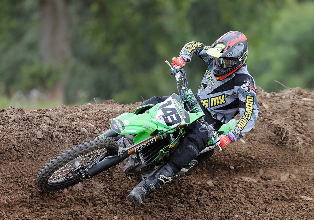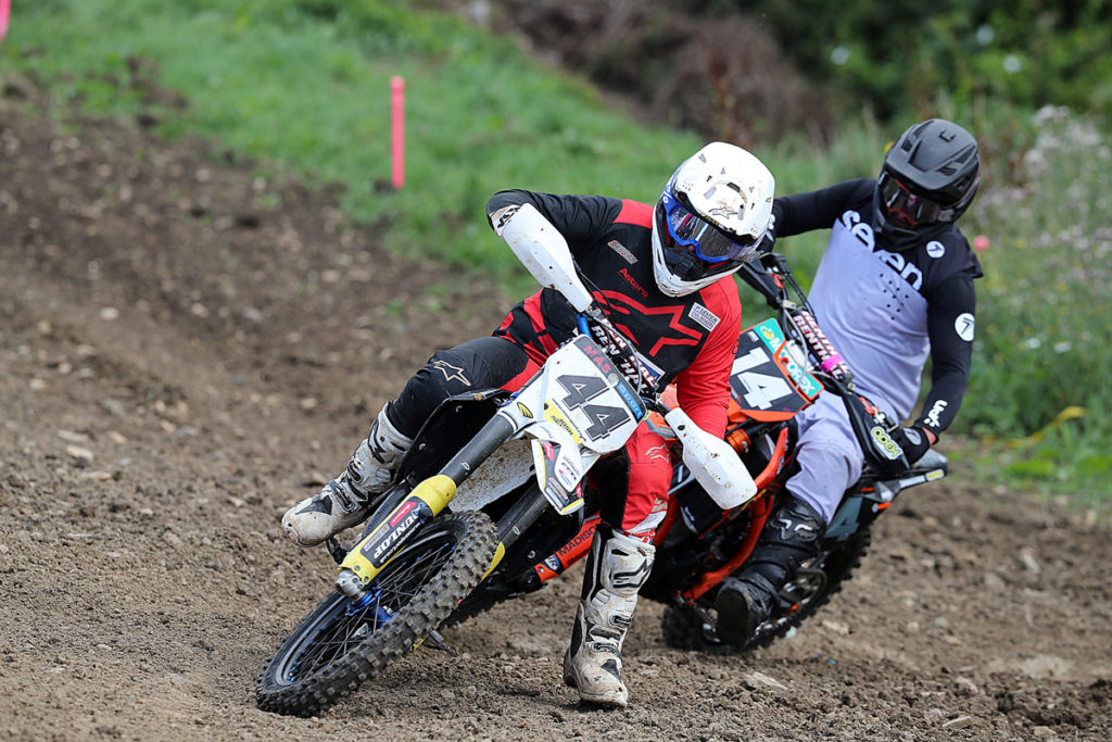 Going into Sunday’s event, just 10 points separated the MX1 Experts top three of Sam Jones, Luke Bull and Richard Lloyd. The big news though that then emerged before the action was underway at Nympsfield was that the unfortunate series leader Jones was a non-starter after contracting Covid, so who would now be Champion? Well, it was to be Bull who went 2/3/2 in the three moto’s completed as Wild-card rider Karl Haycock blasted to a maximum unbeaten score. Typical of how the day was to unfold, Haycock led moto one from gate to flag ahead of Bull, Tony Griffiths, Richard Lloyd, Lee Clarkson and Thomas Herbert.