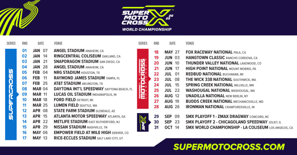 “As a proud partner of Supercross at Daytona International Speedway for over 50 years, we look forward to welcoming the first-ever SuperMotocross World Championship Playoffs to the Midwest at Chicagoland Speedway,” said Chip Wile, senior vice president and chief track properties officer, NASCAR. “With a thrilling season of motorsports ahead, we are excited to see riders return to Daytona and Chicagoland for intense two-wheel action this season.”